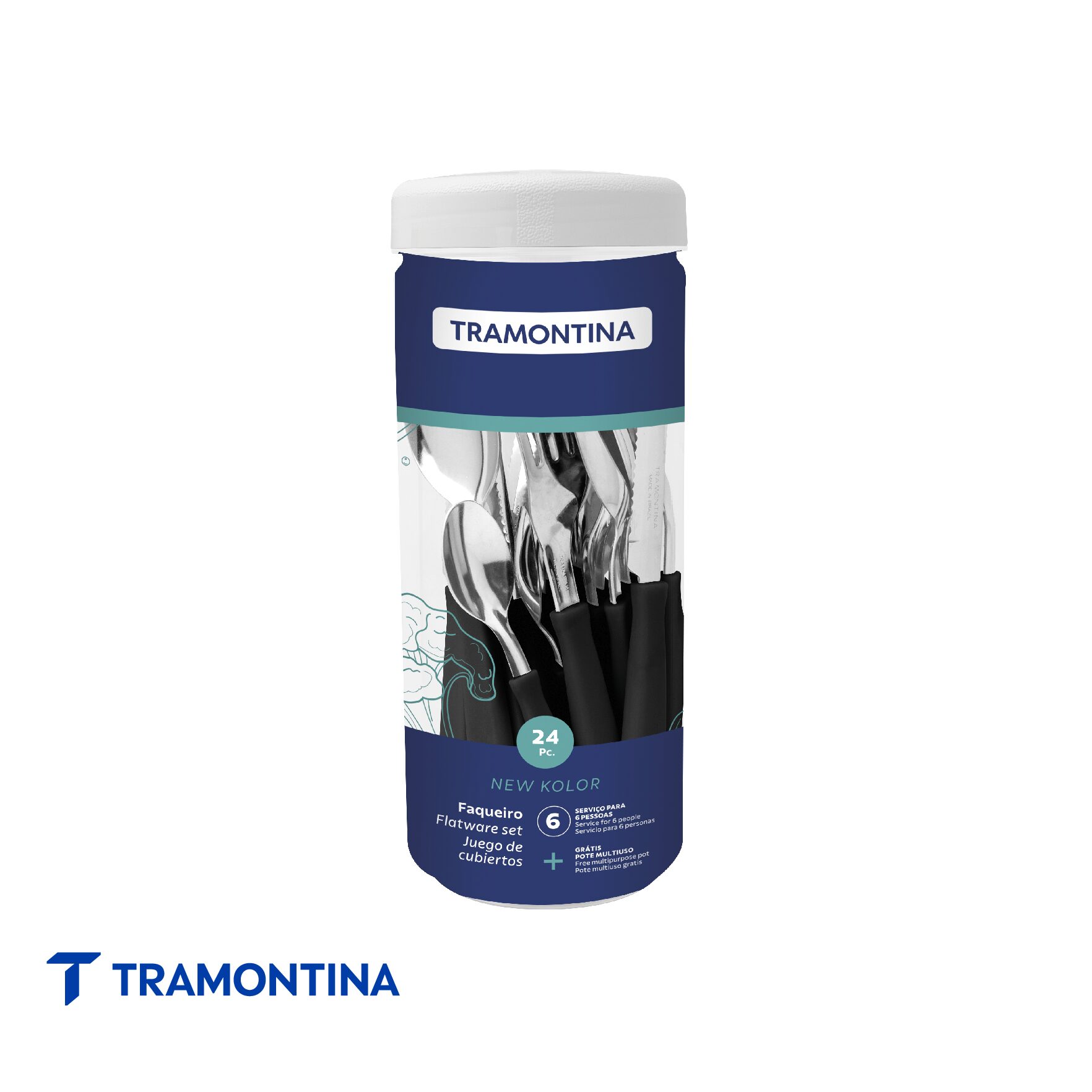 Juego de Cubiertos New Kolor Pote Negro 24 Piezas – Tramontina