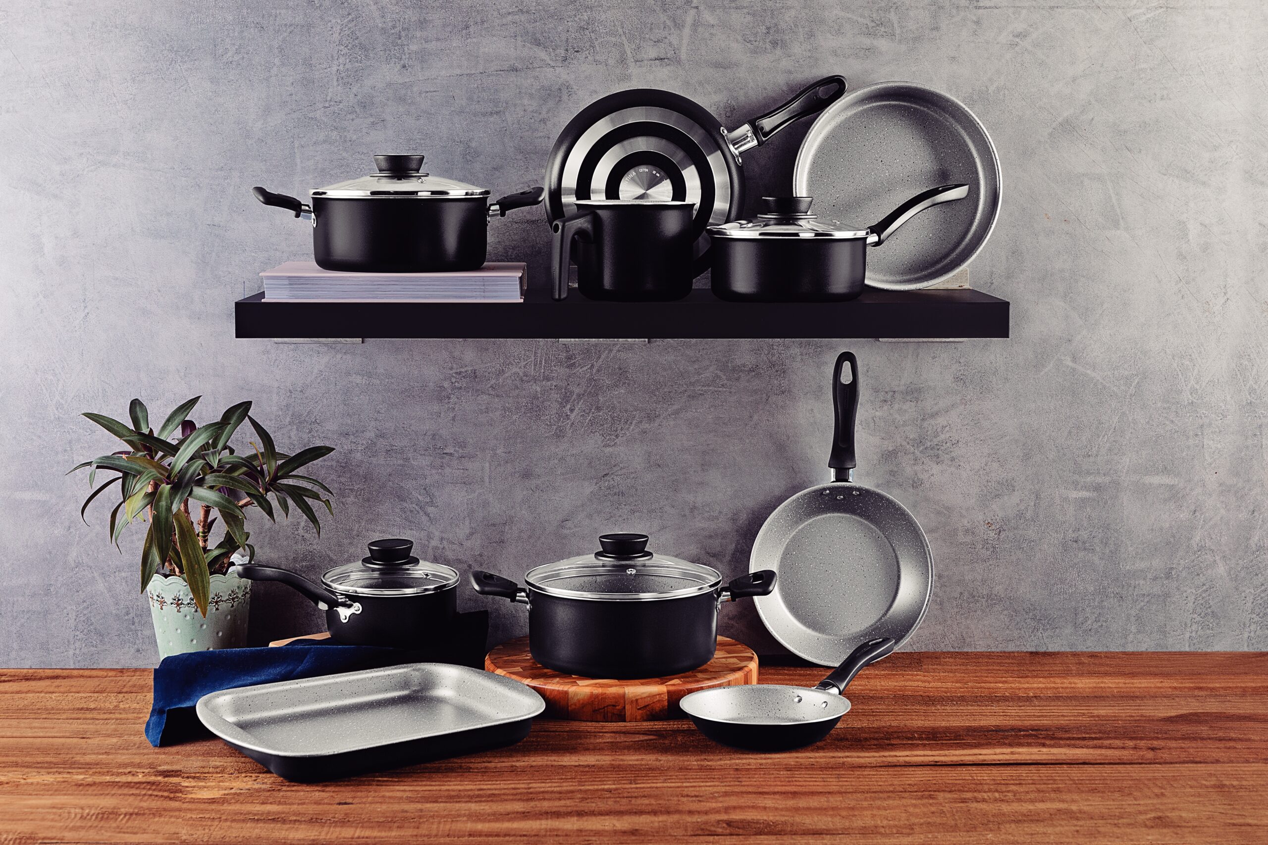 Transforme su cocina con la batería de cocina Tramontina Linz en aluminio con revestimiento interno y externo en antiadherente Starflon Max negro de 10 piezas. Ideal para el uso diario, esta batería de cocina está fabricada en aluminio de alta calidad y garantiza una cocción rápida y uniforme, sin que los alimentos se peguen en la superficie, porque posee revestimiento interno y externo de antiadherente Starflon Max. Las piezas incluyen tapas de vidrio templado con bordes de acero inoxidable, que ofrecen visibilidad durante la preparación. Los mangos y asas son de baquelita y nylon, ambos materiales antitérmicos que garantizan más seguridad y confort durante el uso. Compatibles con cocinas a gas, eléctricas y vitrocerámicas, estas ollas son aptas para lavavajillas, ¡lo que hará aún más práctica y eficiente su rutina diaria!