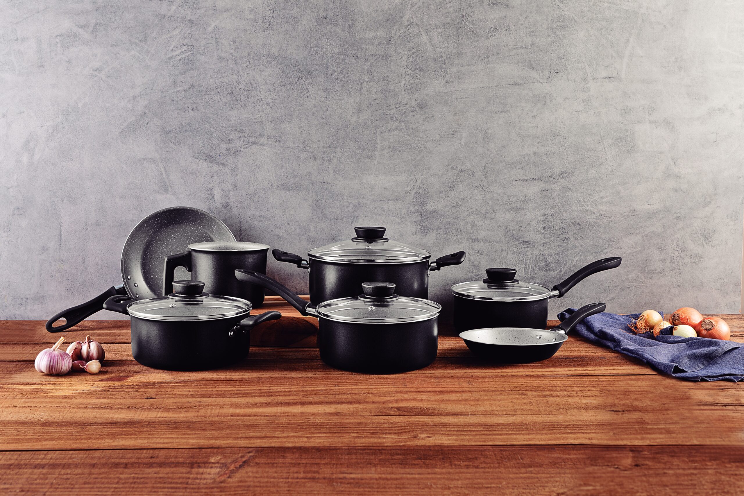 Incorpore practicidad y eficiencia en su cocina con la batería de cocina Tramontina Linz en aluminio con revestimiento interno y externo en antiadherente Starflon Max negro de 7 piezas. Cada pieza está fabricada en aluminio, asegura una cocción rápida y uniforme, y evita que los alimentos se peguen. Esto facilita la limpieza y proporciona una mayor durabilidad. Con tapas de vidrio templado con bordes de acero inoxidable, ofrece más visibilidad durante la preparación, mientras que los mangos y asas de baquelita antitérmica y los agarradores de nylon garantizan seguridad y comodidad en el uso. Las piezas son versátiles y compatibles con cocinas a gas, eléctricas y vitrocerámicas, además de ser aptas para lavavajillas. ¡Esto aporta toda la funcionalidad que la preparación de sus comidas y usted se merecen!