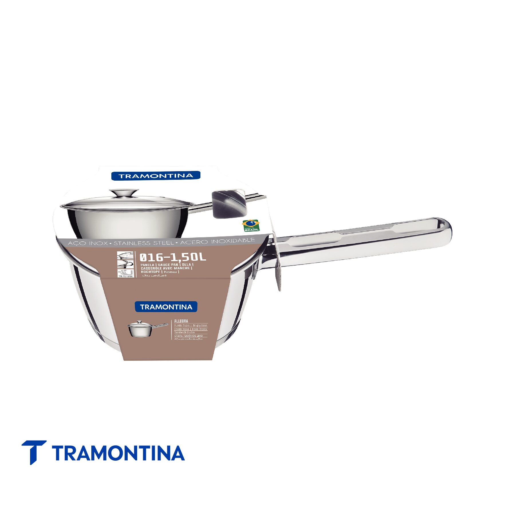 Traiga el diseño sencillo y práctico de la línea Allegra a su cocina. ¡Con la olla Allegra de acero inoxidable con fondo triple y tapa de vidrio 16 cm de diámetro y 1,5 l Tramontina sus recetas serán mucho más deliciosas! Hecha totalmente de acero inoxidable con terminación en alto brillo, posee fondo triple (acero inoxidable + aluminio + acero inoxidable), característica que distribuye el calor de manera uniforme, proporcionando una cocción más rápida y manteniendo los alimentos calientes durante más tiempo, además de ahorrar más energía. Es perfecta para la preparación de varios tipos de recetas, ya que también viene con una tapa con salida de vapor. Práctica y versátil, se puede utilizar en diferentes tipos de cocinas y se puede lavar diariamente en el lavavajillas. ¡Una olla que elevará el nivel de sus recetas!