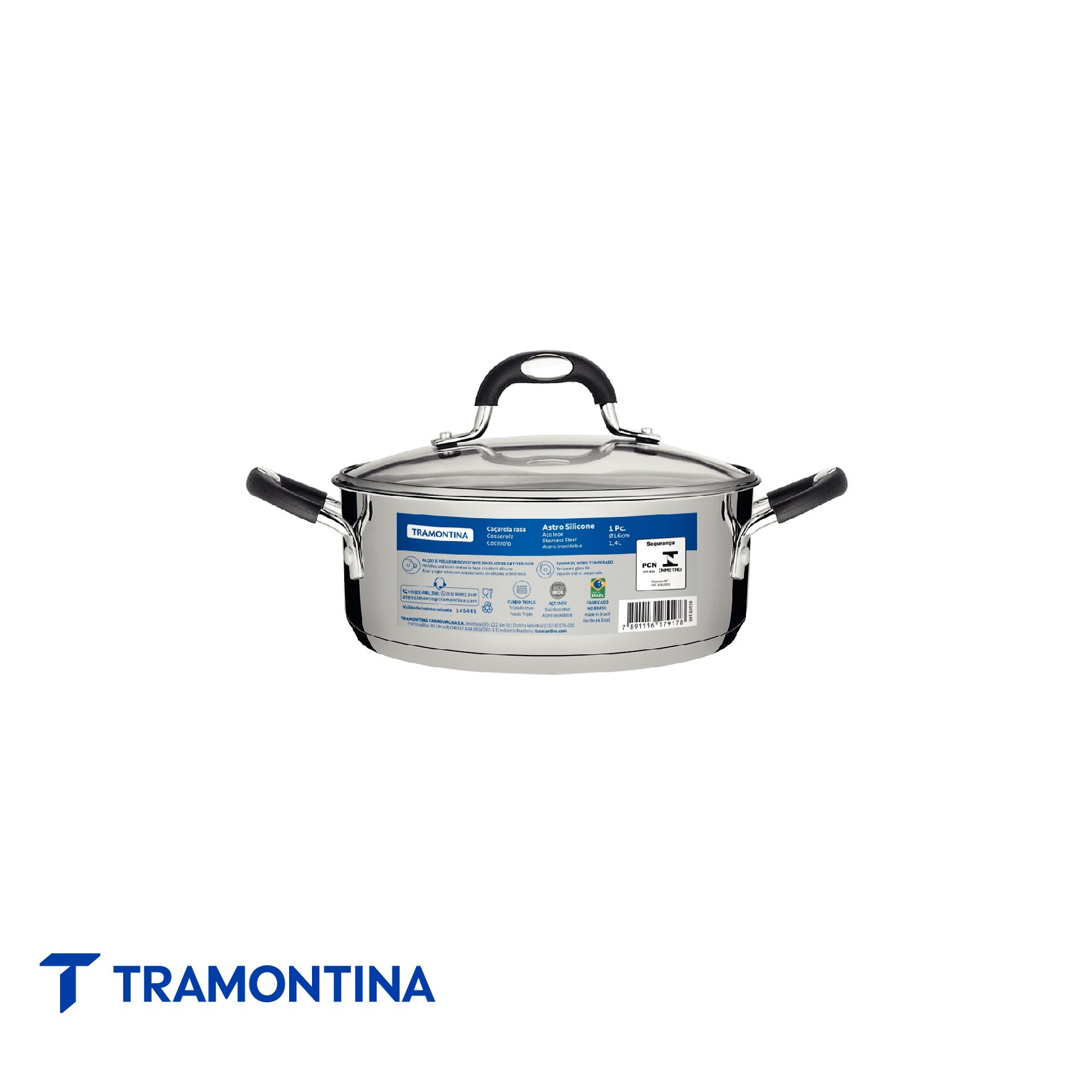 ¡Es genial tener productos prácticos y al mismo tiempo económicos en nuestra cocina! Con la cacerola rasa Astro Silicone de acero inoxidable con fondo triple de 16 cm de diámetro Tramontina, tendrá un producto que lo ayuda en las tareas diarias. Perfecta para preparar sus mejores recetas, la cacerola cuenta con tecnología de punta. Con fondo triple (acero inoxidable + aluminio + acero inoxidable), distribuye el calor uniformemente, cocinando más rápido los alimentos y ahorrando energía. Además de mantenerlos calientes durante más tiempo. Es muy fácil de limpiar y versátil, se puede usar en diferentes tipos de cocinas. Viene con una tapa de vidrio con salida de vapor y posee 16 cm de diámetro, ideal para satisfacer las necesidades de la cocina. Esta pieza también garantiza la seguridad: los mangos y asas son revestidos de silicona antitérmica, lo que hace que el agarre sea más cómodo. ¡Es una pieza esencial que proporciona estilo y practicidad en la vida cotidiana!