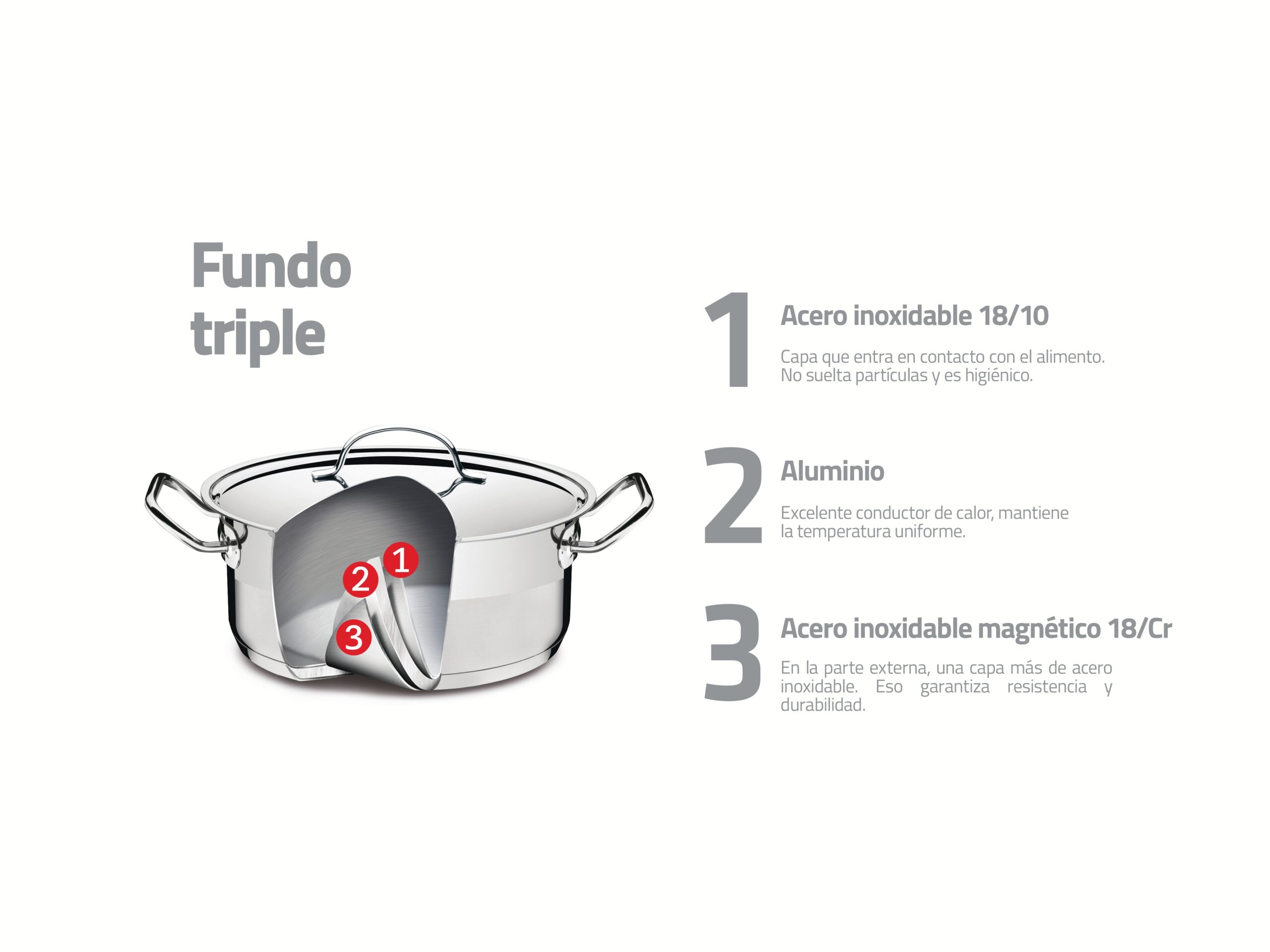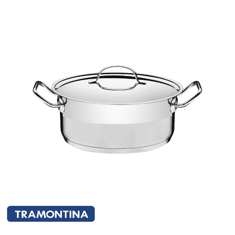 Perfecta para grandes preparaciones, la cacerola Tramontina rasa de acero inoxidable fondo triple con tapa plana detalle satinado 30 cm de diámetro 8.9 L trae la eficiencia de los productos de la línea Professional, ideal para quien busca cocinar con calidad. Producida de acero inoxidable y fondo triple (acero inoxidable + aluminio + acero inoxidable), garantiza que toda la olla se caliente por igual, proporcionando un cocción uniforme de los alimentos. Además de todo el glamur y elegancia del acero inoxidable, es extremadamente práctica, puede usarse en todos los tipos de cocina.