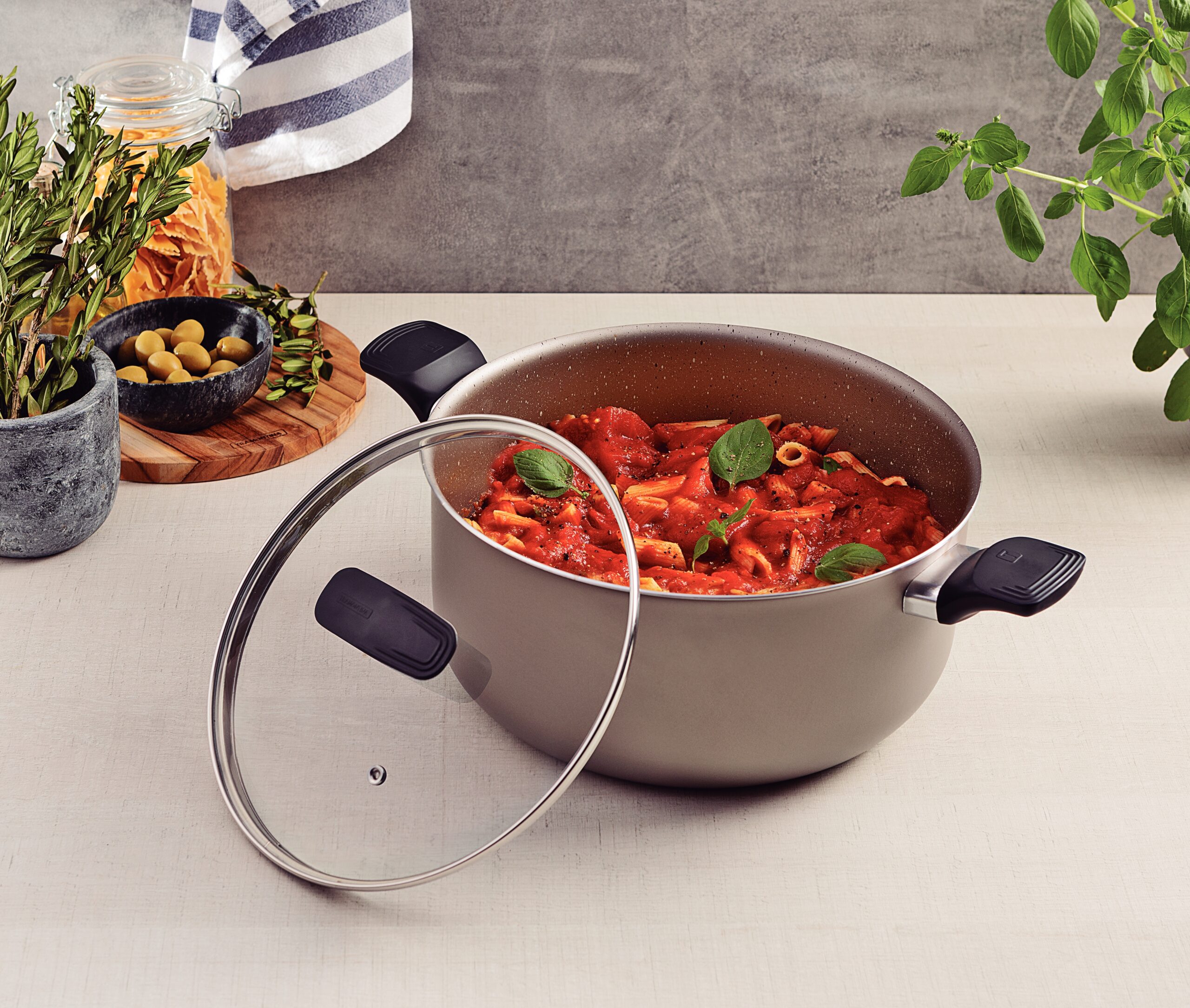 La cacerola Tramontina Milazzo en aluminio con revestimiento interno y externo en antiadherente Starflon Max almendra de 28 centímetros de diámetro es ideal para grandes preparaciones. Su cuerpo de aluminio con revestimiento antiadherente de Starflon Max permite una cocción rápida y uniforme, facilitando la limpieza y evitando que los alimentos se peguen. Sus asas de baquelita antitérmica con acabado soft-touch ofrecen seguridad y comodidad durante el uso. Acompaña una tapa de vidrio templado con salida de vapor y borde de acero inoxidable, que permiten visualizar la preparación de los alimentos sin perder calor. Se puede utilizar en cocinas a gas, eléctricas y vitrocerámicas, lo que ofrece una gran versatilidad. Esta cacerola combina durabilidad con practicidad. ¡Transforme su día a día en la cocina para obtener más eficiencia con la calidad y la innovación de Tramontina!