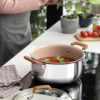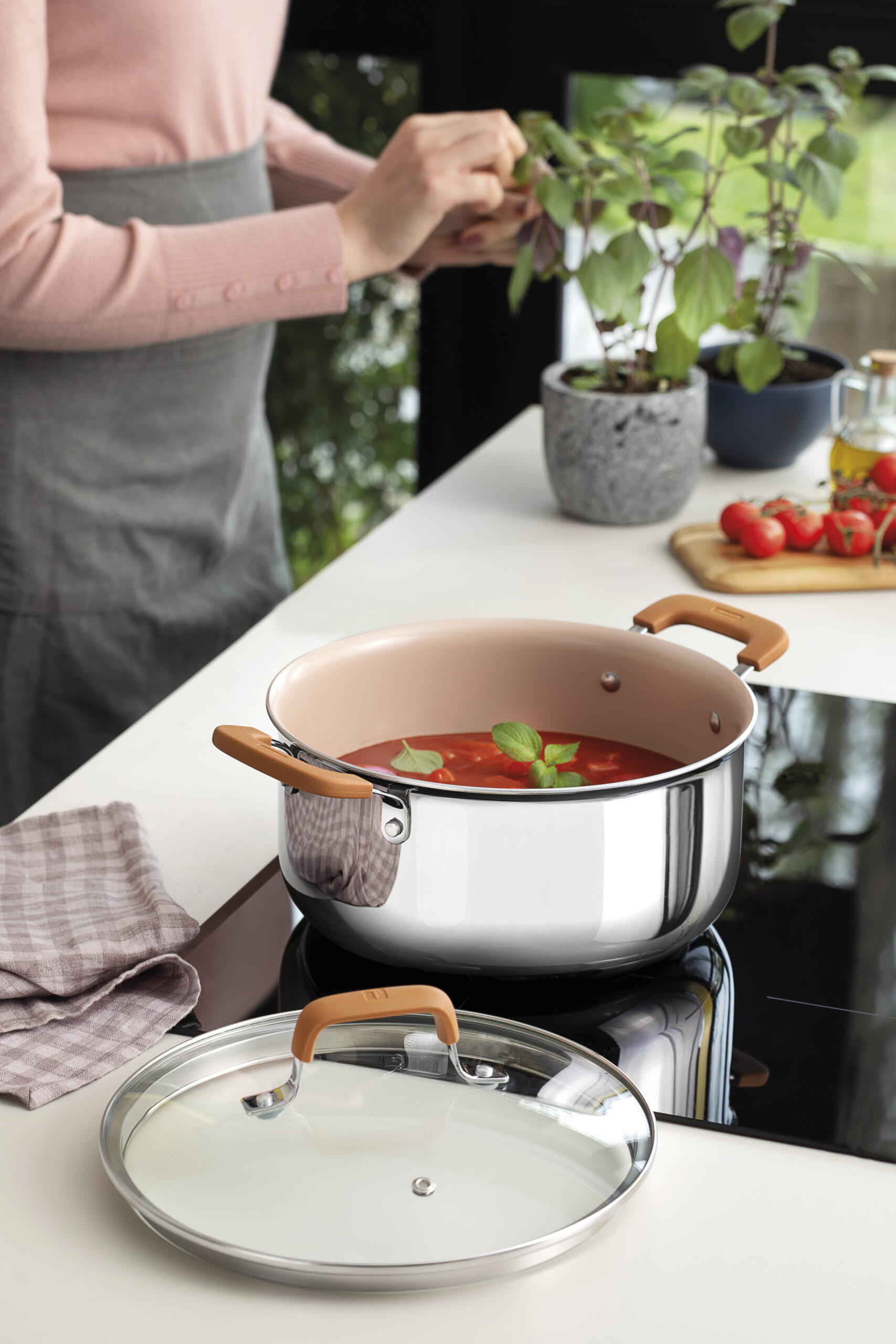 La cacerola Tramontina Romagna en acero inoxidable y aluminio con revestimiento interno cerámico Marfil de 24 centímetros de diámetro y 5,24 litros combina robustez y practicidad, siendo ideal para preparar grandes recetas. Perfecta para guisos, pastas y carnes, es una excelente elección para quienes les encanta recibir a familiares o amigos en casa. Su revestimiento interno cerámico permite una cocción uniforme y facilita la limpieza. La Tecnología Biply Induction, que combina acero inoxidable y aluminio, permite que la cacerola sea compatible con todo tipo de cocinas, incluso las de inducción y ofrece una cocción rápida y uniforme, además de ahorrar energía y seguridad a la hora de cocinar. Las asas y los agarradores metálicos con protección de silicona brindan más confort y seguridad durante el uso, mientras que el diseño sofisticado aporta un toque de modernidad a su cocina. ¡La cacerola perfecta para quienes valoran la practicidad y la calidad en el día a día, llevando elegancia en cada comida!
