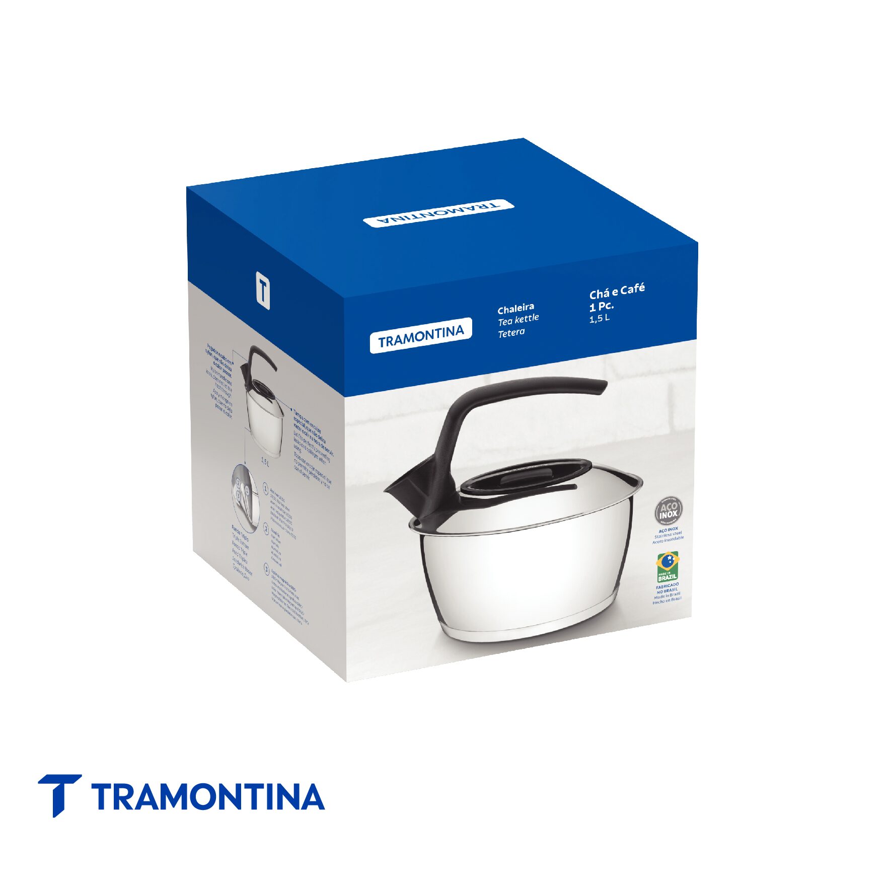 La belleza está acompañada de seguridad total con la tetera Tramontina de acero inoxidable con fondo triple y mango negro de 1,5 L. Un producto que une un diseño sofisticado y encantador. Ofreciendo, también, practicidad y funcionalidad para dejar su cocina mucho más hermosa y preparada. ¡La tetera de acero inoxidable de Tramontina no puede faltar en la cocina de quien le encanta recibir y servir bien a sus invitados!