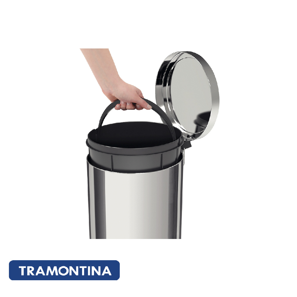 Basurero Tramontina Brasil Pedal de Acero Inoxidable con Acabado Pulido y Balde Interno Extraíble de 30 L