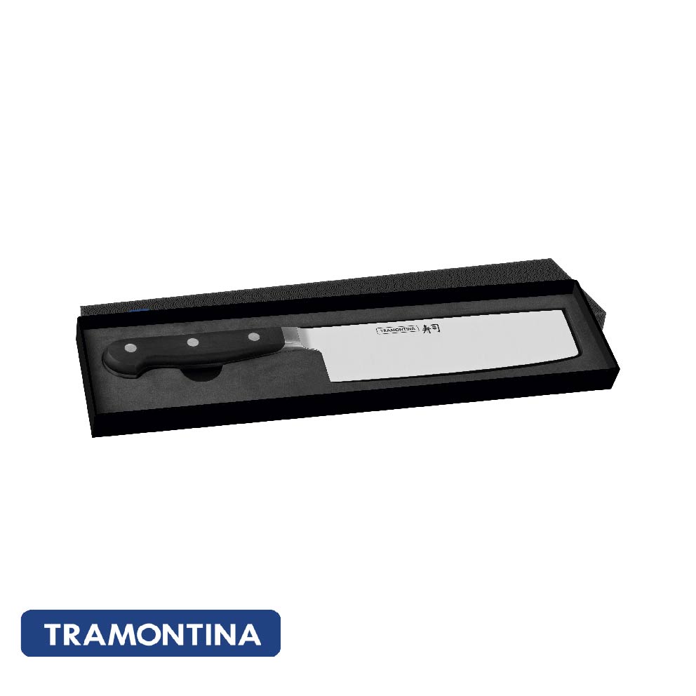 La línea especial de Sushi propuesta por Tramontina gana un integrante de presencia. El Cuchillo Nakiri Tramontina Sushi con Lámina de Acero Inoxidable y Mango de Policarbonato y Fibra de Vidrio 7 pulgadas ofrece una lámina con acero inoxidable especial con filo para un corte preciso para preparaciones elaboradas. Más ancho, es ideal para cortar y picar legumbres y vegetales, permitiendo un manejo práctico y eficiencia para un corte minucioso.