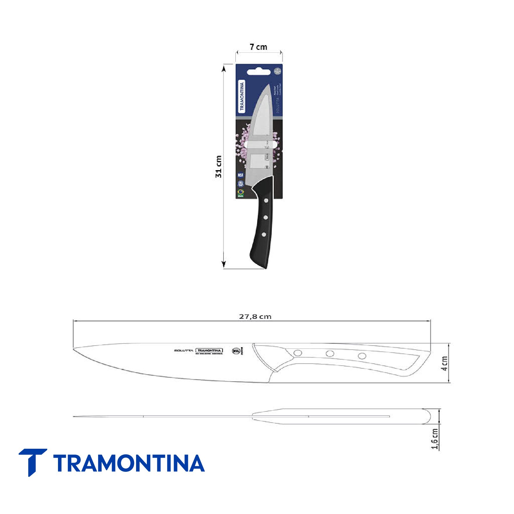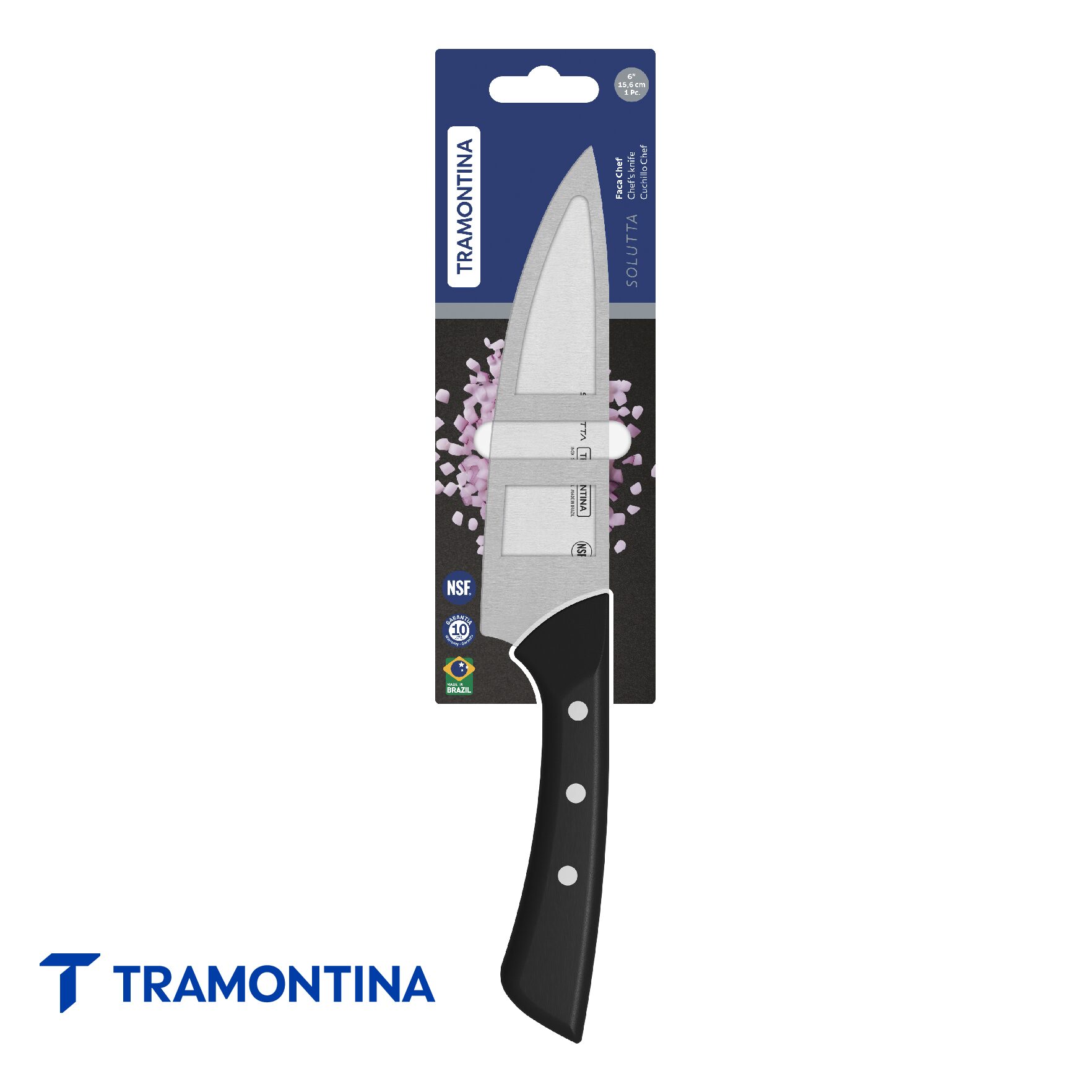 Para quienes buscan eficiencia y practicidad en la cocina, el cuchillo Chef Tramontina Solutta con lámina en acero inoxidable y mango en policarbonato y fibra de vidrio de 6 pulgadas negro es la elección ideal. Con lámina de acero inoxidable, el cuchillo garantiza un filo duradero y eficiente, que es ideal para preparar una variedad de alimentos. El mango de policarbonato reforzado con fibra de vidrio brinda firmeza y seguridad en el manejo. Certificado por la NSF y resistente al lavavajillas, es la elección perfecta para satisfacer las necesidades diarias con practicidad y confiabilidad.