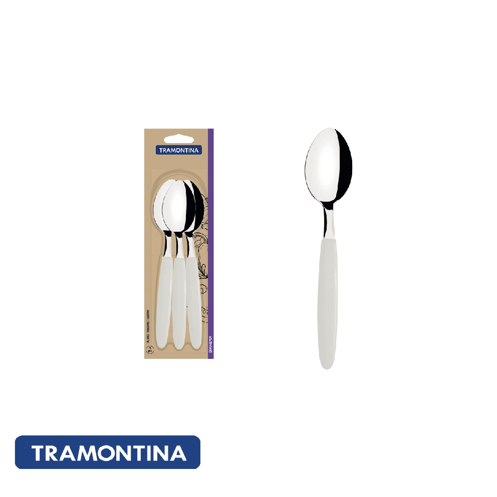 Juego de Cucharas de Mesa Tramontina Ipanema con Hojas de Acero Inoxidable y Mangos de Polipropileno blanco Esmeralda 3 Piezas
