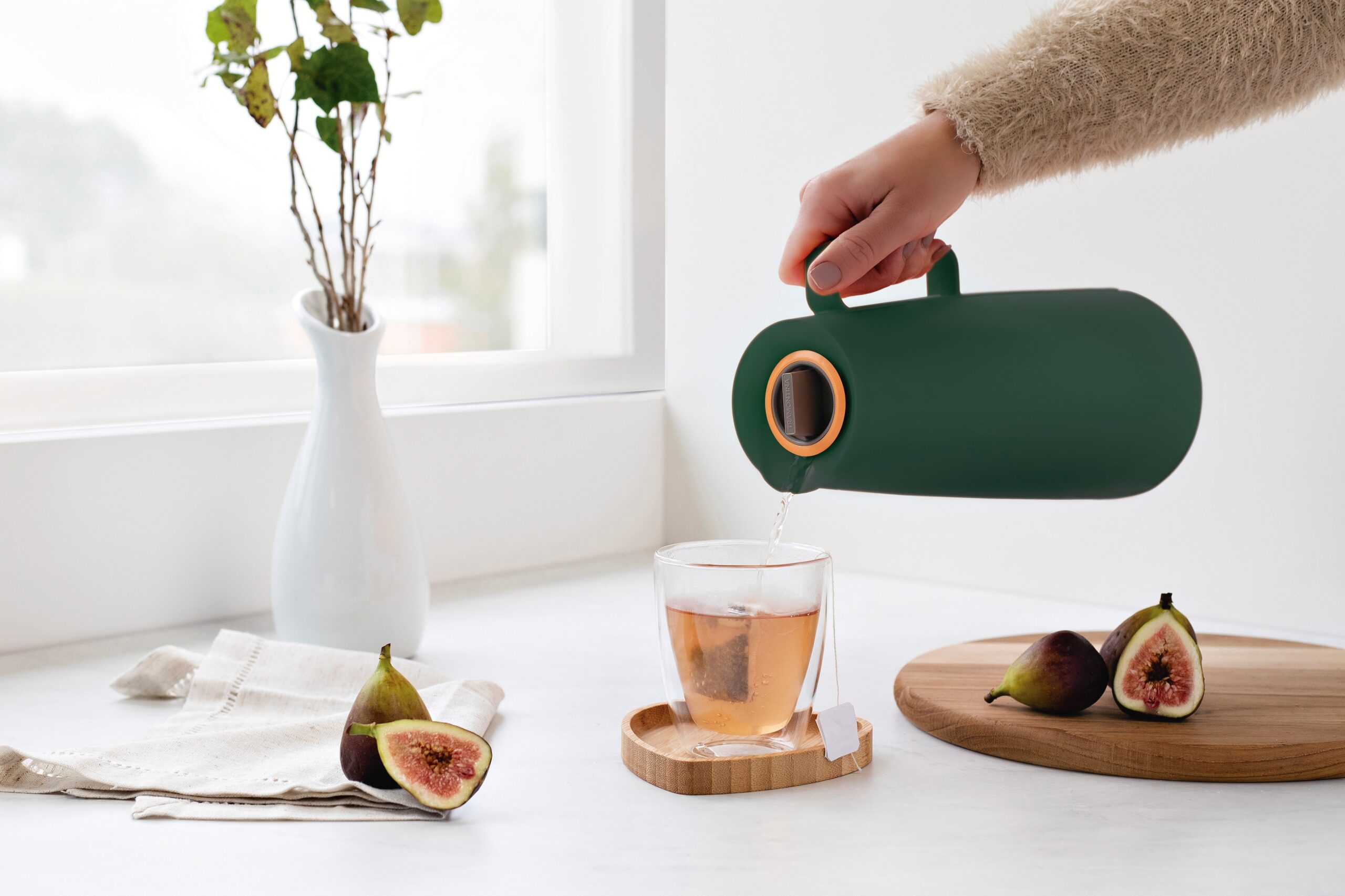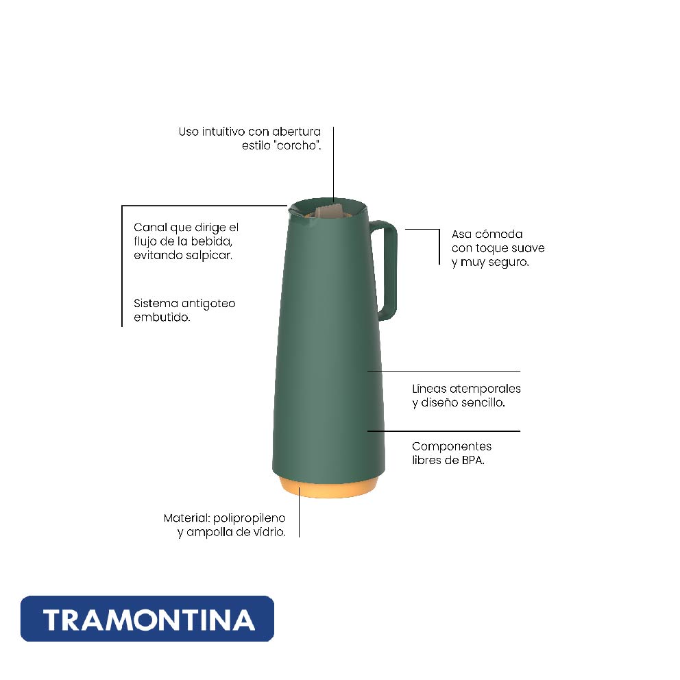 Para incorporar practicidad y belleza a su día, necesita contar con la jarra térmica Tramontina Exata en plástico verde con ampolla de vidrio 1 litro. Es ideal para colocar sus bebidas preferidas, mejorando aún más el momento de saborearlas, porque mantiene su temperatura ideal durante mucho más tiempo, gracias a que cuenta con una ampolla especial de vidrio. Su utilización es bellísima, porque posee un canal para dirigir perfectamente la bebida. ¡La jarra térmica es liviana, ocupa menos espacio en su cocina y tiene el sello IF Design que garantiza alta calidad!