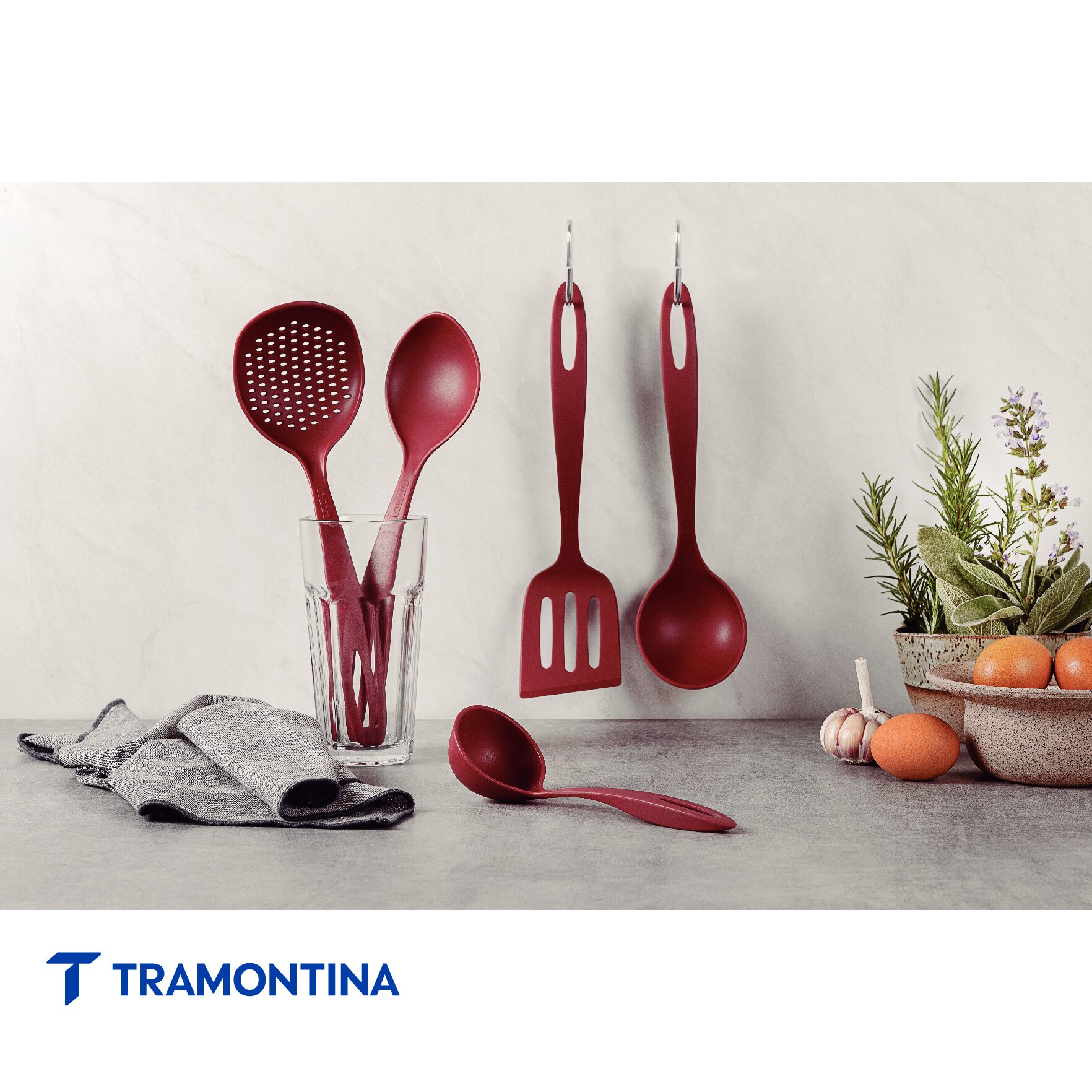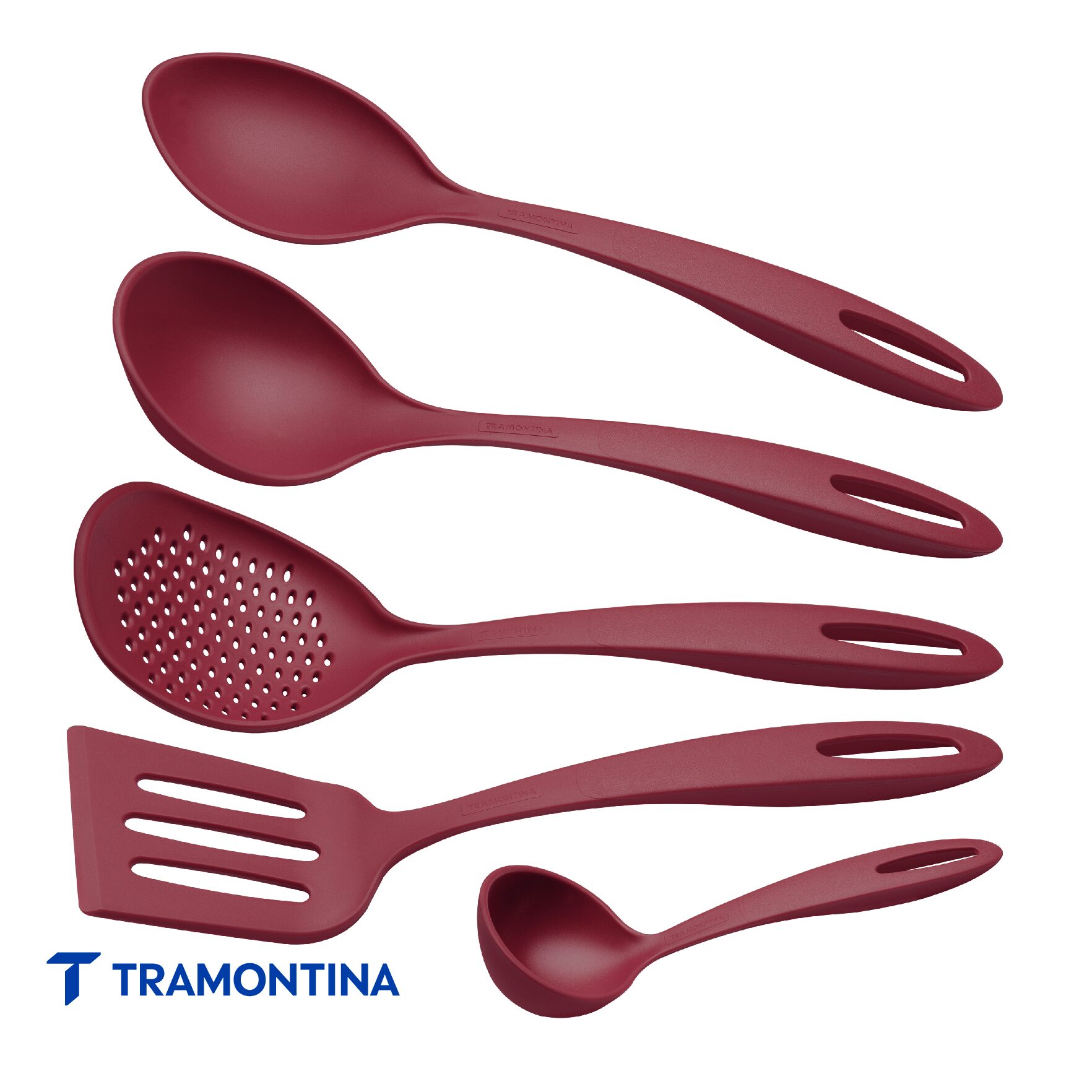 Para cocinar y servir sus comidas con mucha practicidad, puede contar con el juego de utensilios Tramontina Ability en nylon rojo 05 piezas. Ideales para el uso en piezas con revestimiento antiadherente o cerámico, porque no dañan la superficie, los utensilios soportan temperaturas de hasta 180 grados. Todos poseen orificios pasadores en el mango y son aptos para el lavavajillas. ¡Un juego para quienes desean completar sus cocinas con mucha funcionalidad y estilo!