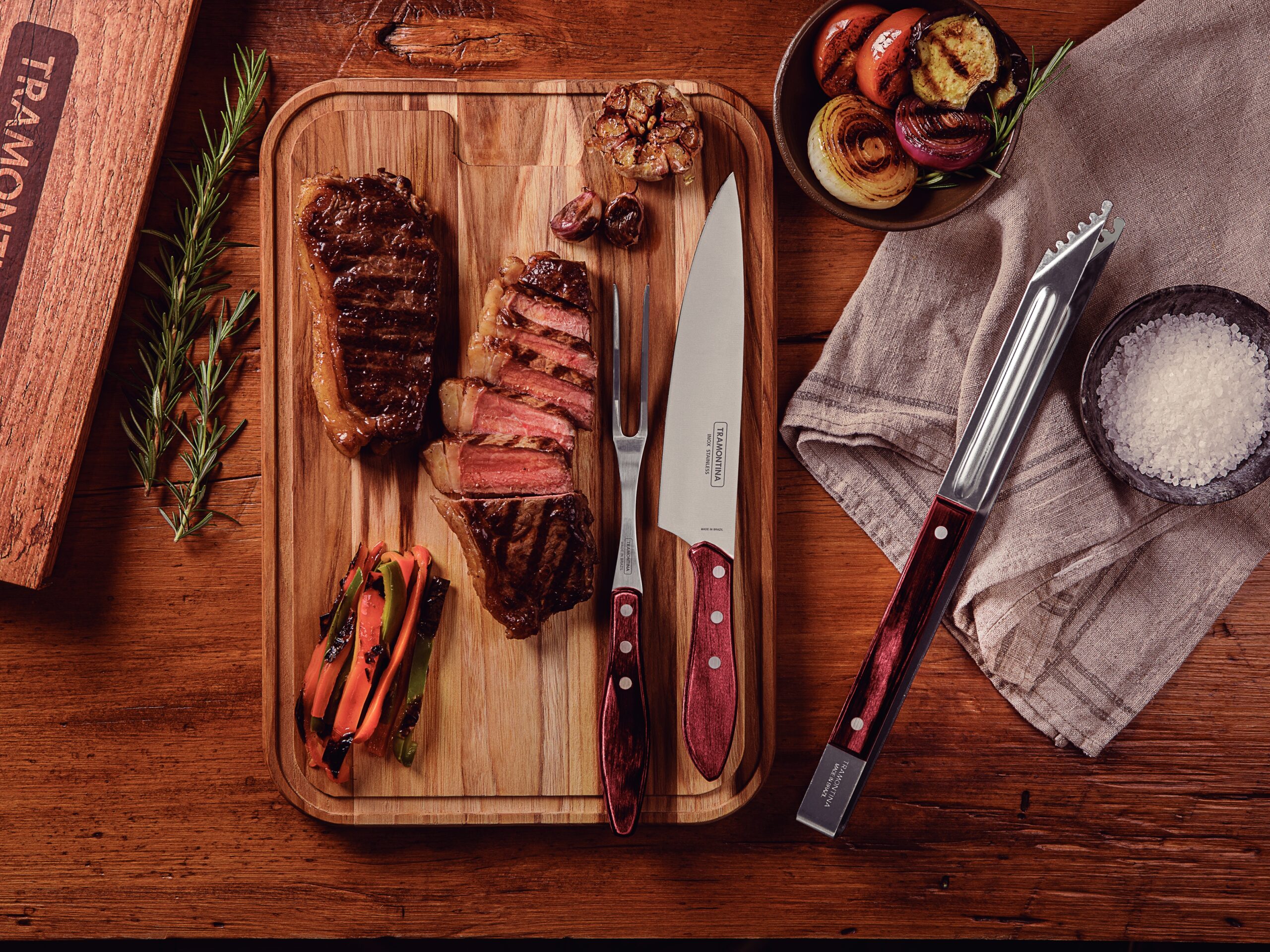 Para servir un asado suculento y sabroso a sus amigos, el juego trinchante Tramontina con láminas en acero inoxidable y mangos de madera tratada Polywood rojo 03 piezas es esencial. Compuesto por cuchillo con tratamiento térmico, tenedor y pinza producidos con láminas de acero inoxidable y mangos de madera tratada Polywood con remaches de acero inoxidable, ofrece mayor resistencia a los impactos y a las altas temperaturas. ¡Además, las piezas son aptas para lavavajillas y vienen en una caja de cartón litografiada que facilita aún más su almacenamiento!