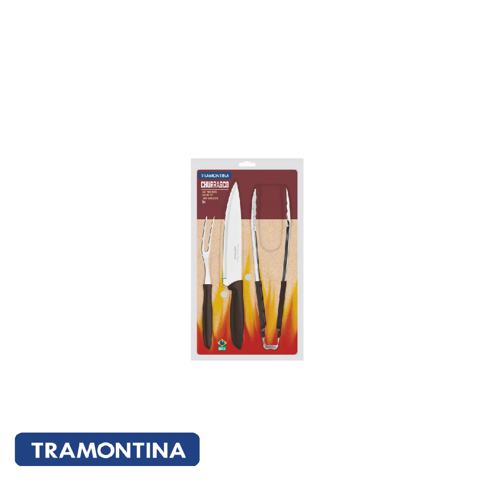 Cuchillo, tenedor y pinza de acero inoxidable con mango de Polipropileno.