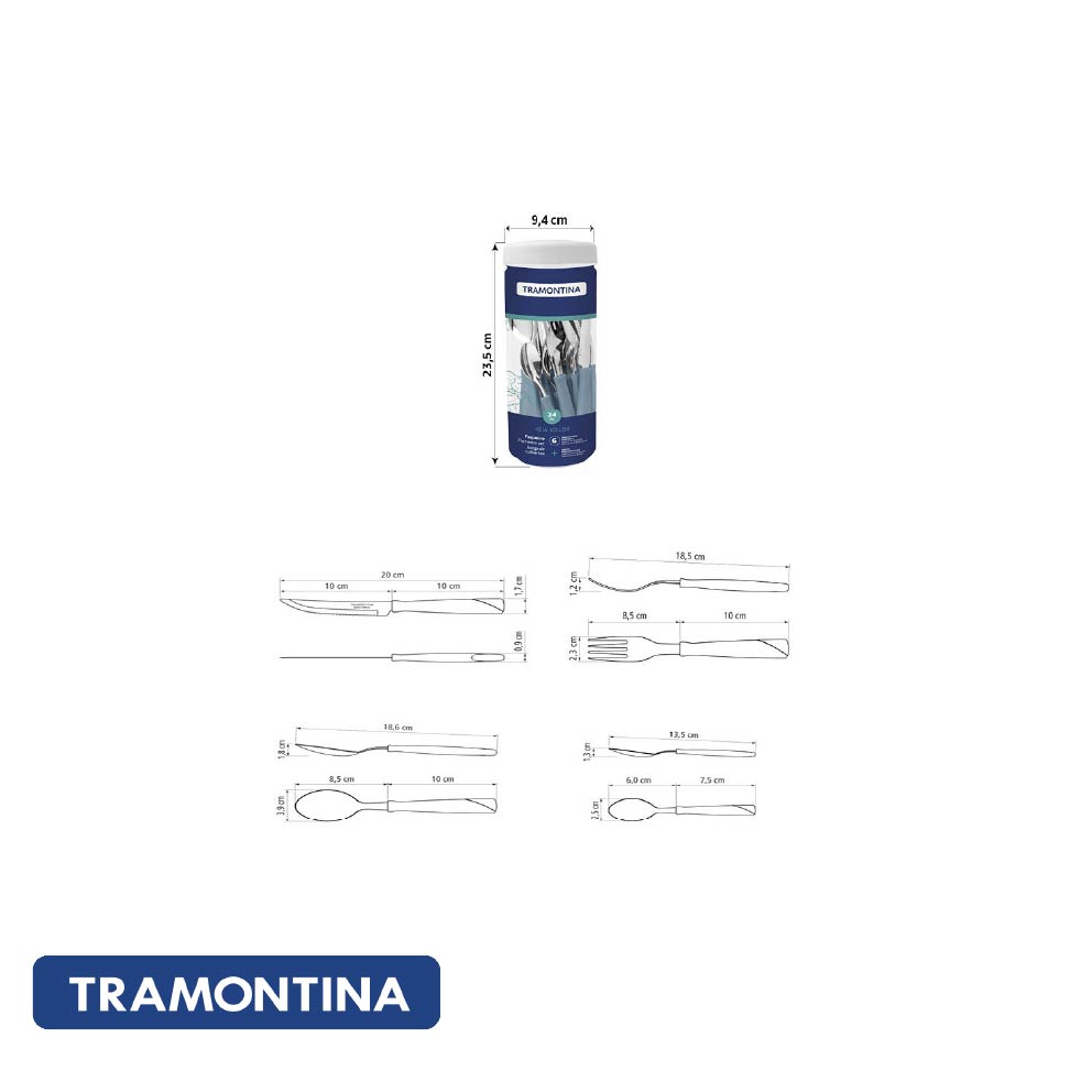 Añada un toque de color y funcionalidad a su mesa con el juego de cubiertos Tramontina New Kolor con láminas de acero inoxidable y mangos de polipropileno azul de 24 piezas. Sus láminas de acero inoxidable garantizan resistencia y durabilidad, mientras que los cuchillos templados proporcionan cortes precisos y duraderos. Los mangos de polipropileno tienen un diseño ergonómico, lo que garantiza comodidad y seguridad durante su uso. Fácil de limpiar y apto para el lavavajillas, ¡es la combinación perfecta de practicidad y estilo para sus comidas diarias!