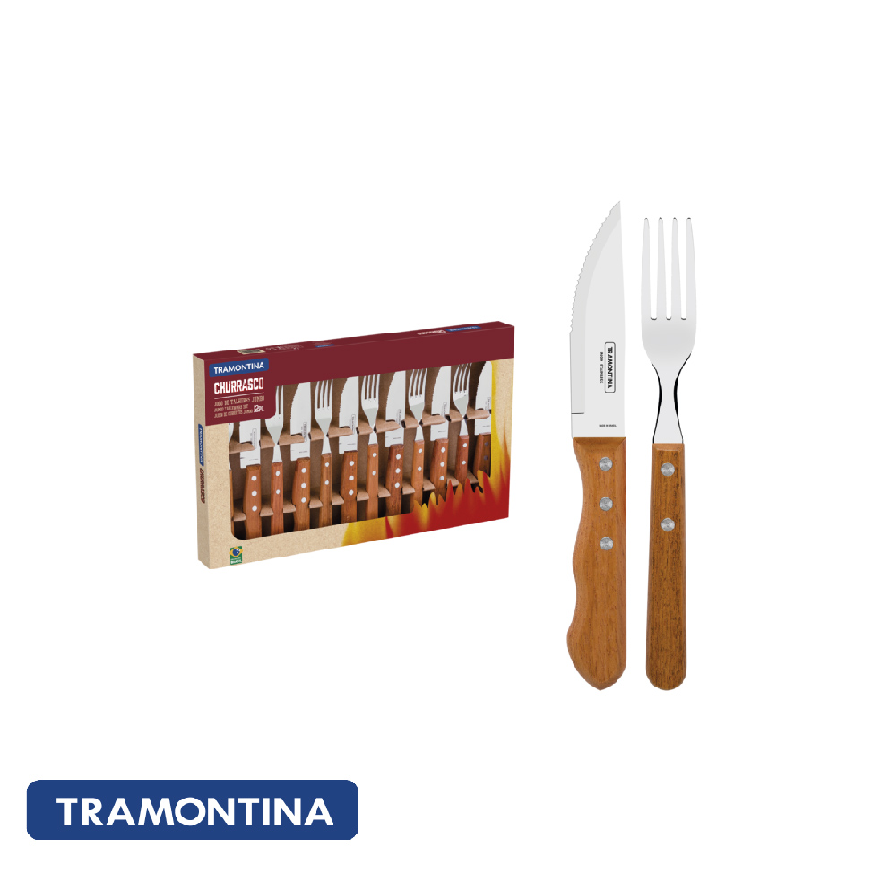 La línea Churrasco de Tramontina tiene mangos de madera que resisten a la intemperie y a la humedad y láminas de acero inoxidable para garantizar el corte perfecto de las carnes.