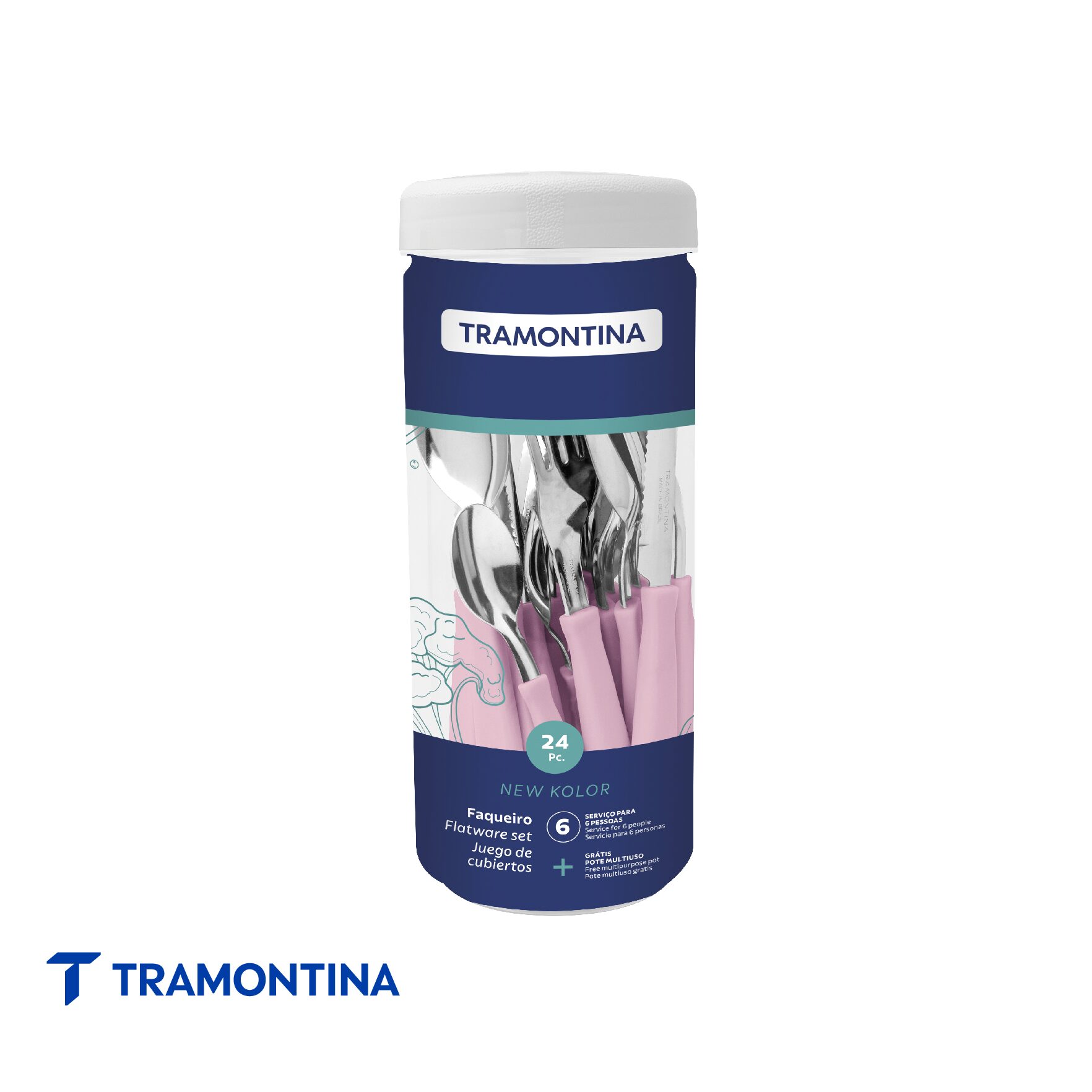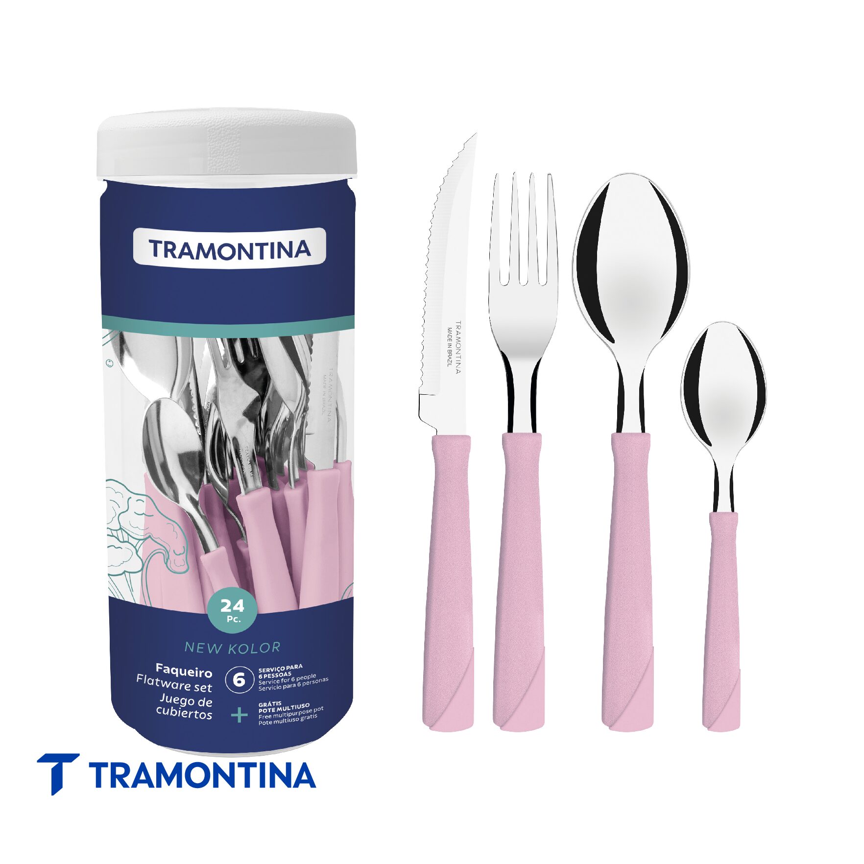 Juego de Cubiertos New Kolor Pote Rosa 24 Piezas – Tramontina