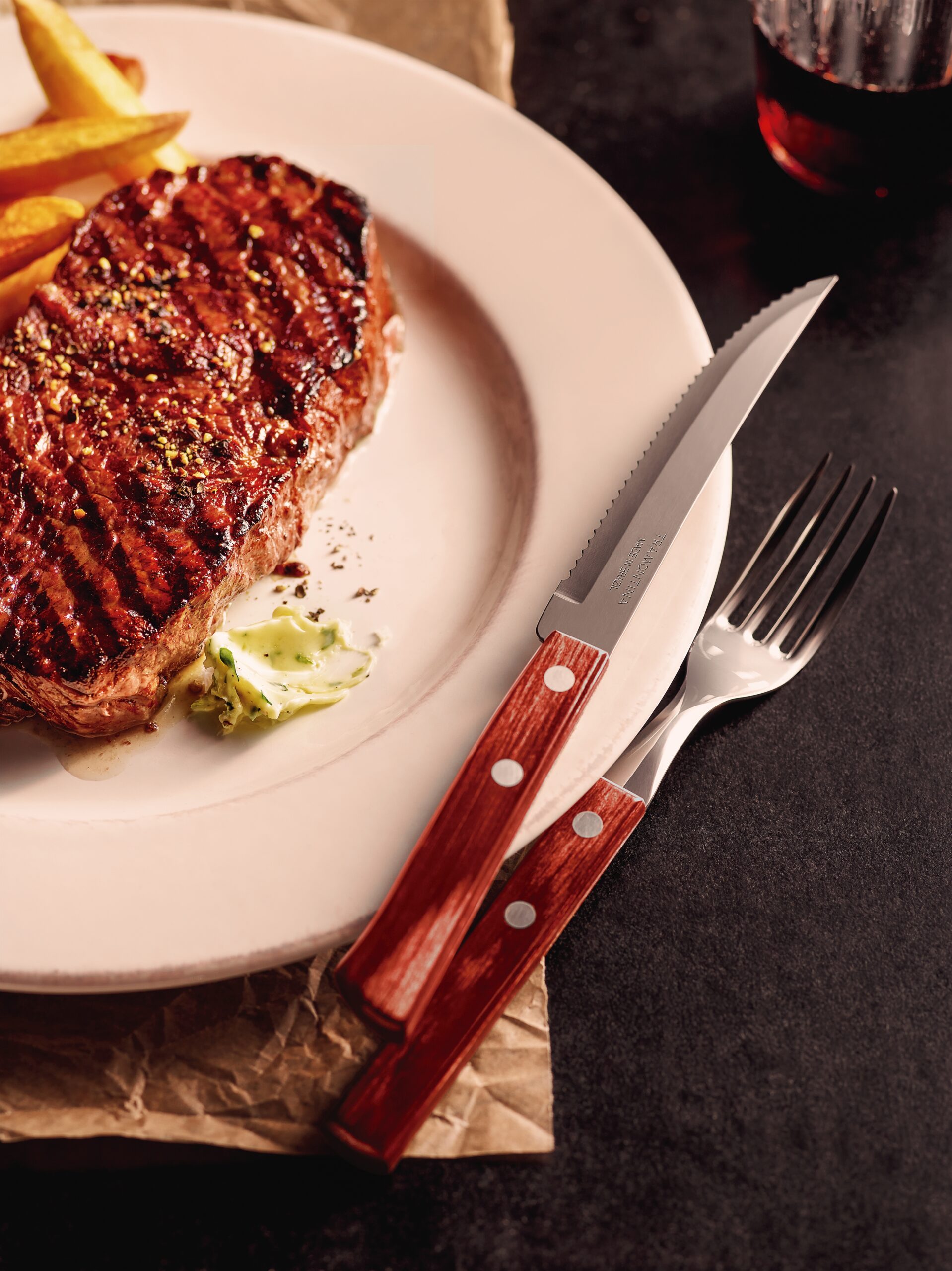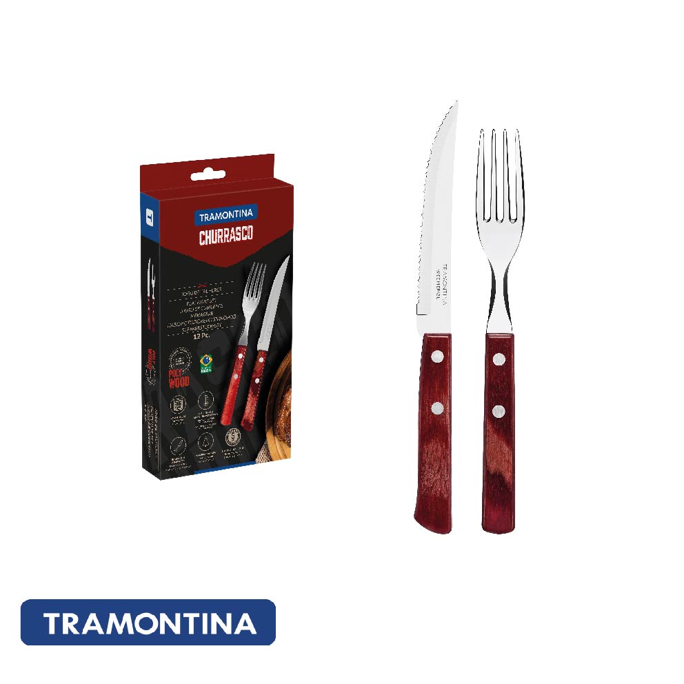 Para apreciar un buen asado, no puede faltar el juego de cubiertos para asado Tramontina con lâminas de acero inoxidable y Mangos de Madera Tratada Polywood Rojo 12 piezas. La mejor opción para garantizar que todos puedan disfrutar de la mejor manera un excelente asado. Las piezas están fabricadas con láminas de acero inoxidable, además de ser altamente duraderas. Los mangos de madera tratada Polywood, que ofrecen un diseño distinguido y belleza para cualquier ocasión, además de ser resistentes a impactos y altas temperaturas. La línea Churrasco posee características fundamentales para quienes buscan las mejores piezas para los mejores momentos.