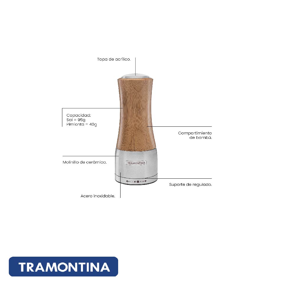 Nada mejor que condimentos frescos y molidos al instante para dar ese toque especial en nuestros platos. ¡Imagine poder usar en su casa la línea Realce, que ofrece el molinillo Tramontina sal o pimienta de bambú y acero inoxidable con molino de cerámica! Con capacidad para 95 g de sal y 40 g de pimienta, tiene ajuste de molido con regulador de tamaño del grano para dar a sus recetas ese toque especial como un verdadero chef. Hecho de bambú y acero inoxidable, cuenta con engranajes de alta resistencia proporcionando mayor durabilidad y un diseño audaz, práctico y elegante que dejará su cocina siempre lista para momentos de mucha alegría y socialización.