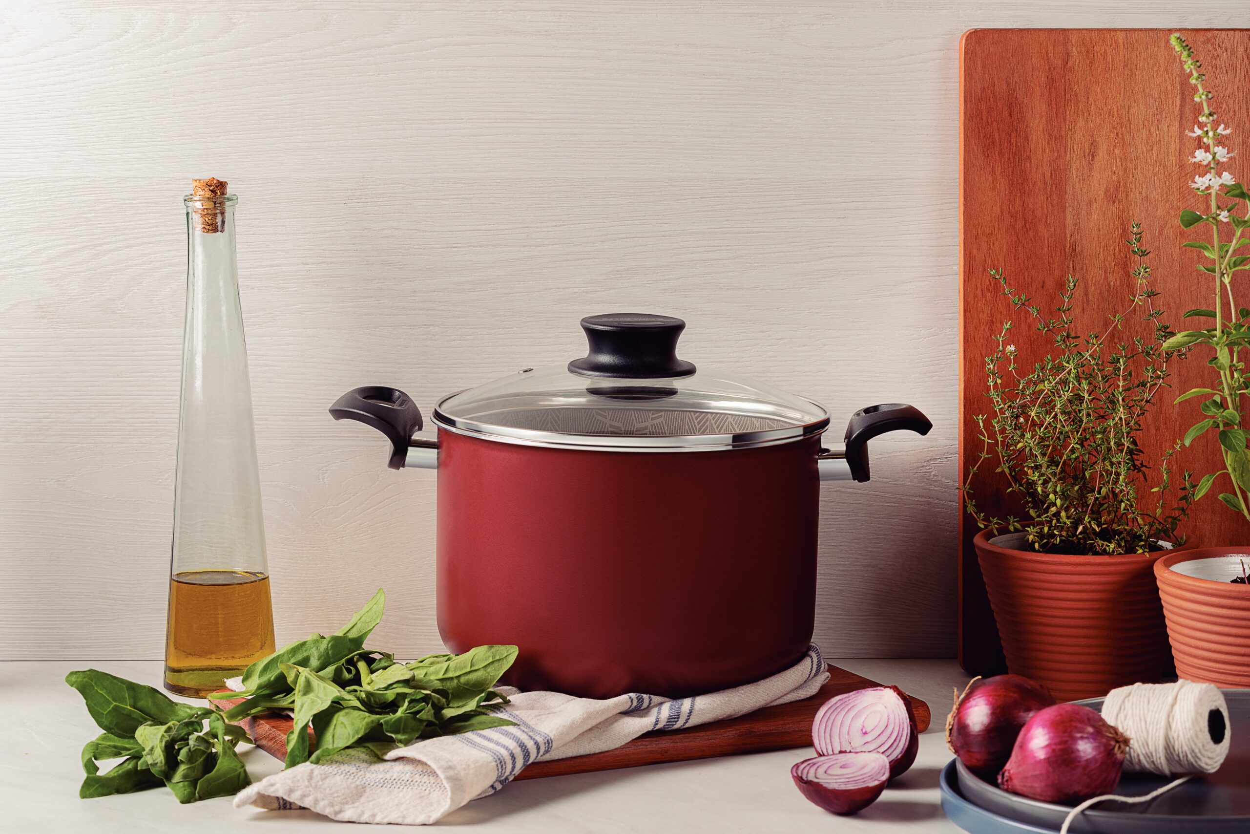 La olla alta Tramontina Paris en aluminio con revestimiento interno y externo antiadherente Starflon Max rojo con tapa de vidrio 22 centímetros 5,7 litros es la elección ideal para preparar sus recetas y sorprender a sus invitados. Está fabricada en aluminio de 1,8 milímetros de espesor y posee revestimiento interno y externo antiadherente Starflon Max, estas dos características brindan una cocción rápida y uniforme de los alimentos, evitan que se peguen en su superficie y, gracias a ello, también es mucho más fácil de limpiar. Para mayor seguridad, cuenta con asas de baquelita antitérmica y agarrador de nylon, materiales que no se calientan y ofrecen un manejo mucho más cómodo. ¡La olla alta posee tapa de vidrio y es apta para lavavajillas, lo que optimizará sus tareas en la cocina!