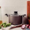 Preparar una sopa o deliciosos fideos para su familia es mucho más práctico con la olla alta Tramontina Paris en aluminio con revestimiento interno y externo antiadherente Starflon Max plomo con tapa de vidrio 26 centímetros de diámetro 9,6 litros. La elección ideal para quienes buscan un producto que cocine los alimentos de manera rápida y uniforme, está completamente fabricada en aluminio y posee revestimiento antiadherente Starflon Max. Gracias al revestimiento, los alimentos no se pegan en la superficie, es muy fácil de limpiar y posee mayor durabilidad. ¡Incluye tapa de vidrio y su mango es de baquelita antitérmica, un material que no se calienta y brinda un manejo mucho más seguro!