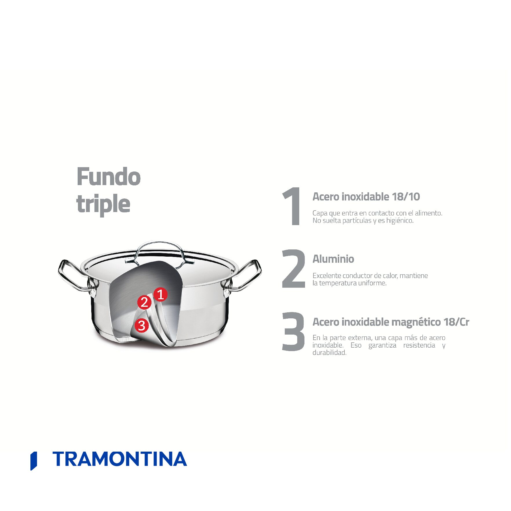 Los cocineros profesionales quedarán impresionados con las cualidades de la olla Empresarial de acero inoxidable con fondo triple sin tapa de 36 cm de diámetro y 28l Tramontina. Perfecta para restaurantes, hoteles y todo tipo de cocina profesional, esta pieza está hecha totalmente de acero inoxidable, por lo que no suelta ningún tipo de residuo, manteniendo los alimentos sanos. Cuenta con la característica de fondo triple (acero inoxidable + aluminio + acero inoxidable), tecnología que distribuye el calor uniformemente, proporcionando una cocción más rápida y uniforme, ahorrando energía y conservando los alimentos calientes durante más tiempo. Su diseño moderno y sin bordes, facilita la limpieza. Esta pieza también cuenta con una elegante terminación con franja satinada y alto brillo. Las asas son fijadas por soldadura de punto, garantizando un mayor refuerzo y seguridad, además de proporcionar un manejo más cómodo. Se puede usar en cocinas a gas, eléctrica, sobre vidriado cerámico y de inducción. ¡Una pieza indispensable para cualquier cocina profesional!