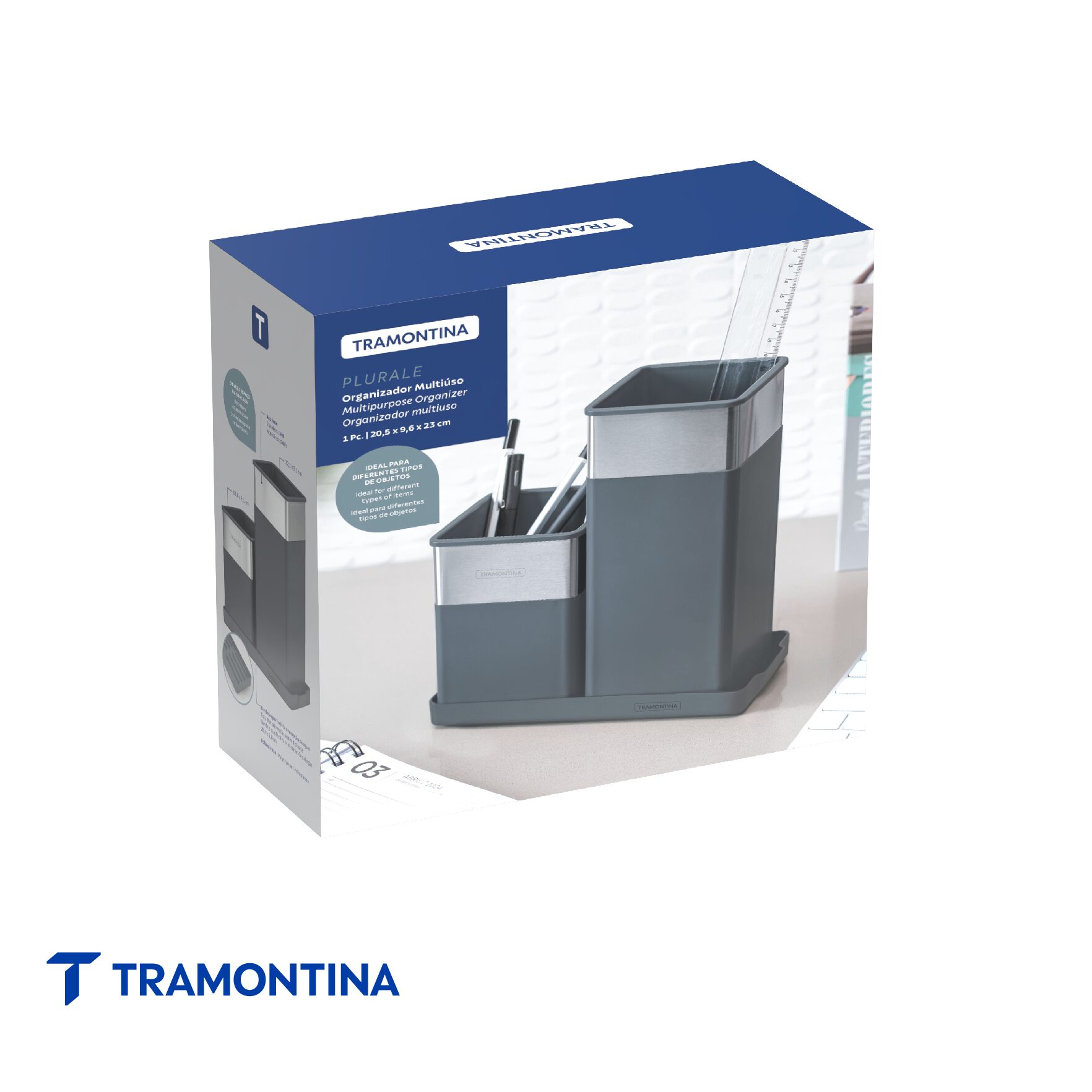 El organizador multiuso Tramontina en acero inoxidable y poliestireno asimétrico es una solución práctica y moderna para organizar lo que necesite. Ideal como escurridor de cubiertos y utensilios de cocina, mantiene cada artículo en su lugar, lo que facilita la preparación de las comidas. En la oficina, organiza con facilidad lapiceras, clips y otros accesorios y mantiene la mesa funcional y ordenada. Un accesorio que combina practicidad con un diseño minimalista, perfecto para quien valora los ambientes organizados y elegantes.