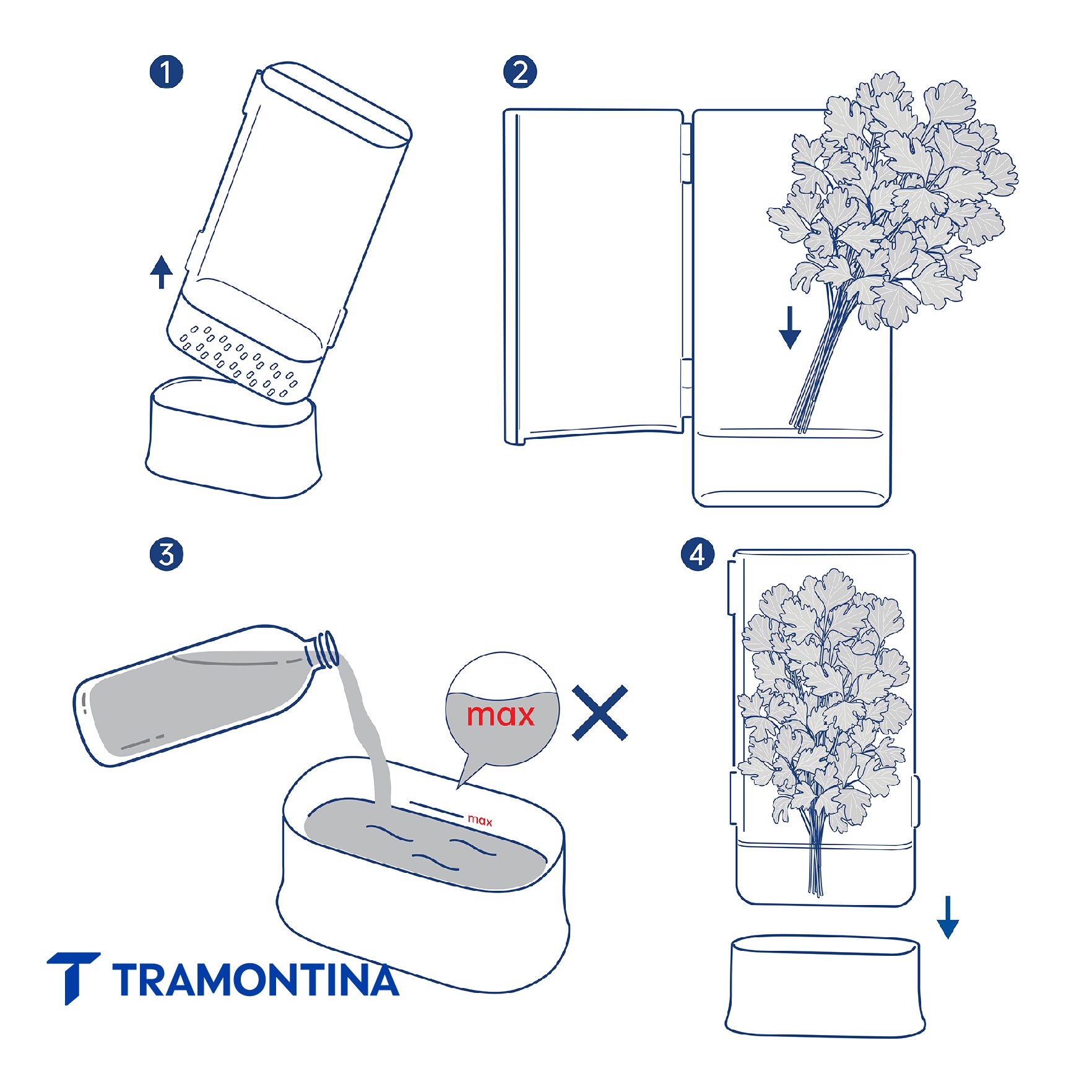 El porta hierbas de heladera Tramontina Organizzare de 1,2 litros es la solución ideal para quienes desean conservar sus hierbas frescas y llenas de sabor por mucho más tiempo. Con un diseño compacto y funcional, se desarrolló para preservar la humedad y crear las condiciones perfectas dentro de la heladera, garantizando que sus hiervas, como la albahaca, el cilantro, el perejil y la menta, permanezcan hidratadas y listas para usar. La cobertura transparente permite visualizar el contenido sin necesidad de abrirlo, mientras que la base con sistema de humedad ayuda a mantener las hierbas frescas y evita que se marchiten o resequen.