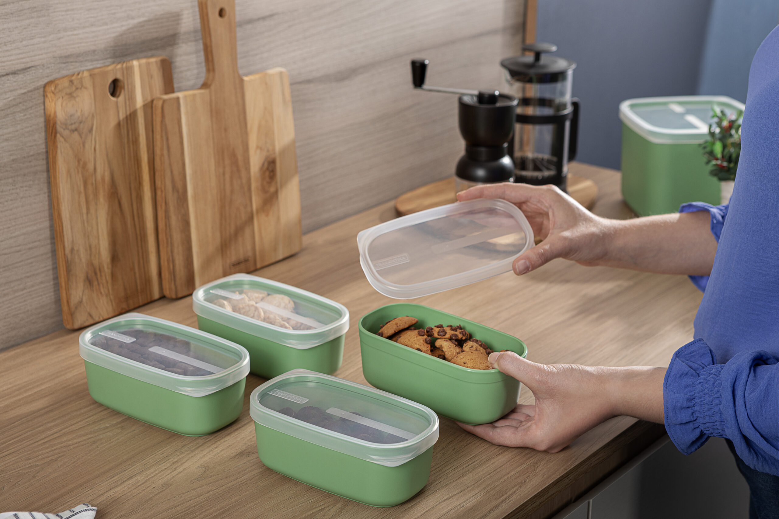 El pote Tramontina MixColor en polipropileno verde salvia con tapa transparente de 650ML es perfecto para almacenar suministros y alimentos más grandes. Su tapa transparente facilita la identificación del contenido y el cuerpo de polipropileno garantiza resistencia y durabilidad. Ideal para mantener la organización y frescura de sus alimentos en la mesa o en la heladera.