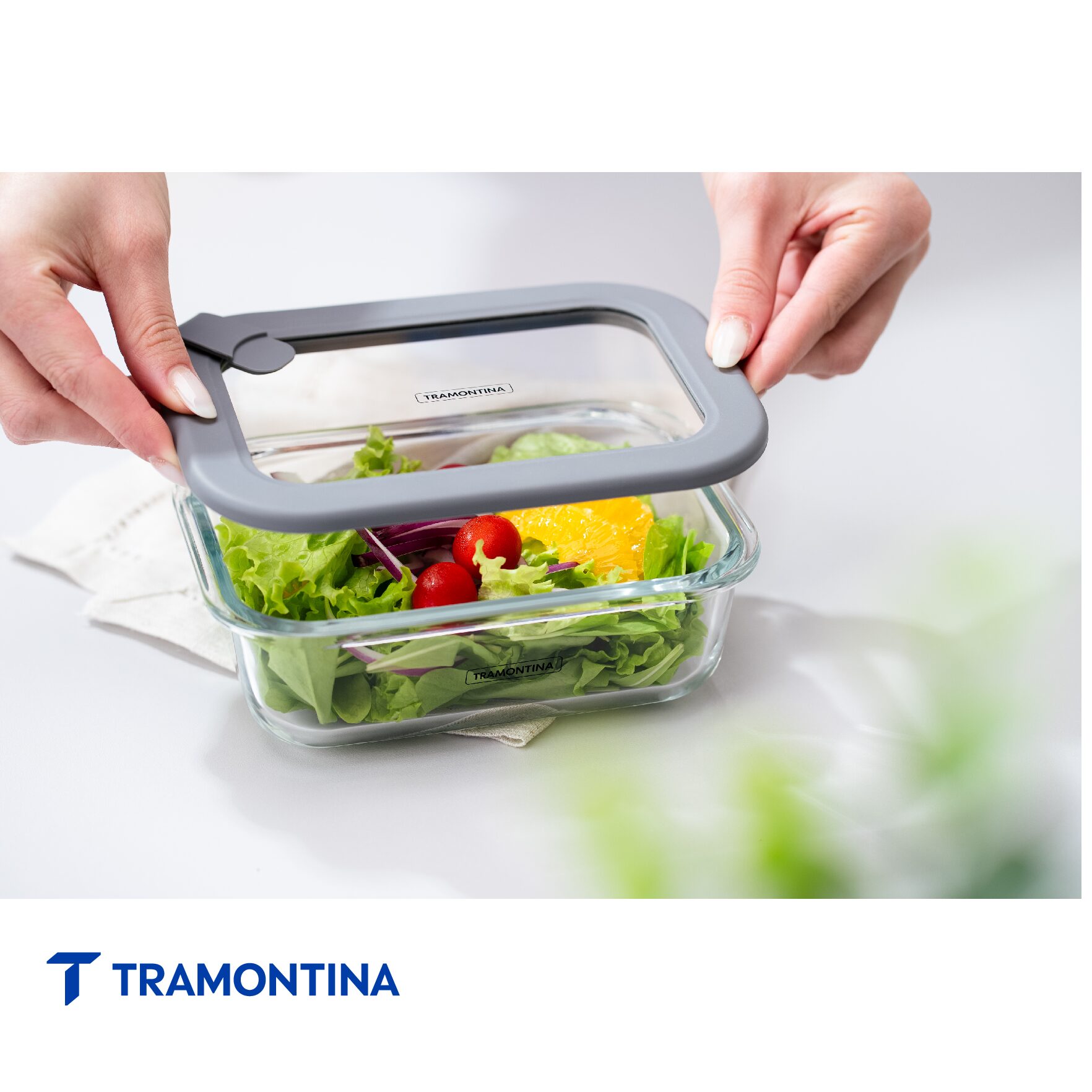 Compacto y versátil, el pote de vidrio Tramontina Vittra rectangular con tapa hermética de silicona de 0,37 L es ideal para porciones pequeñas y meriendas rápidas. La tapa de vidrio con borde de silicona brinda un cierre hermético que preserva los alimentos por más tiempo. Apilable y adecuado para microondas, horno (sin tapa), freezer y heladera, este pote es fácil de lavar y manipular para que su uso diario sea práctico y funcional.