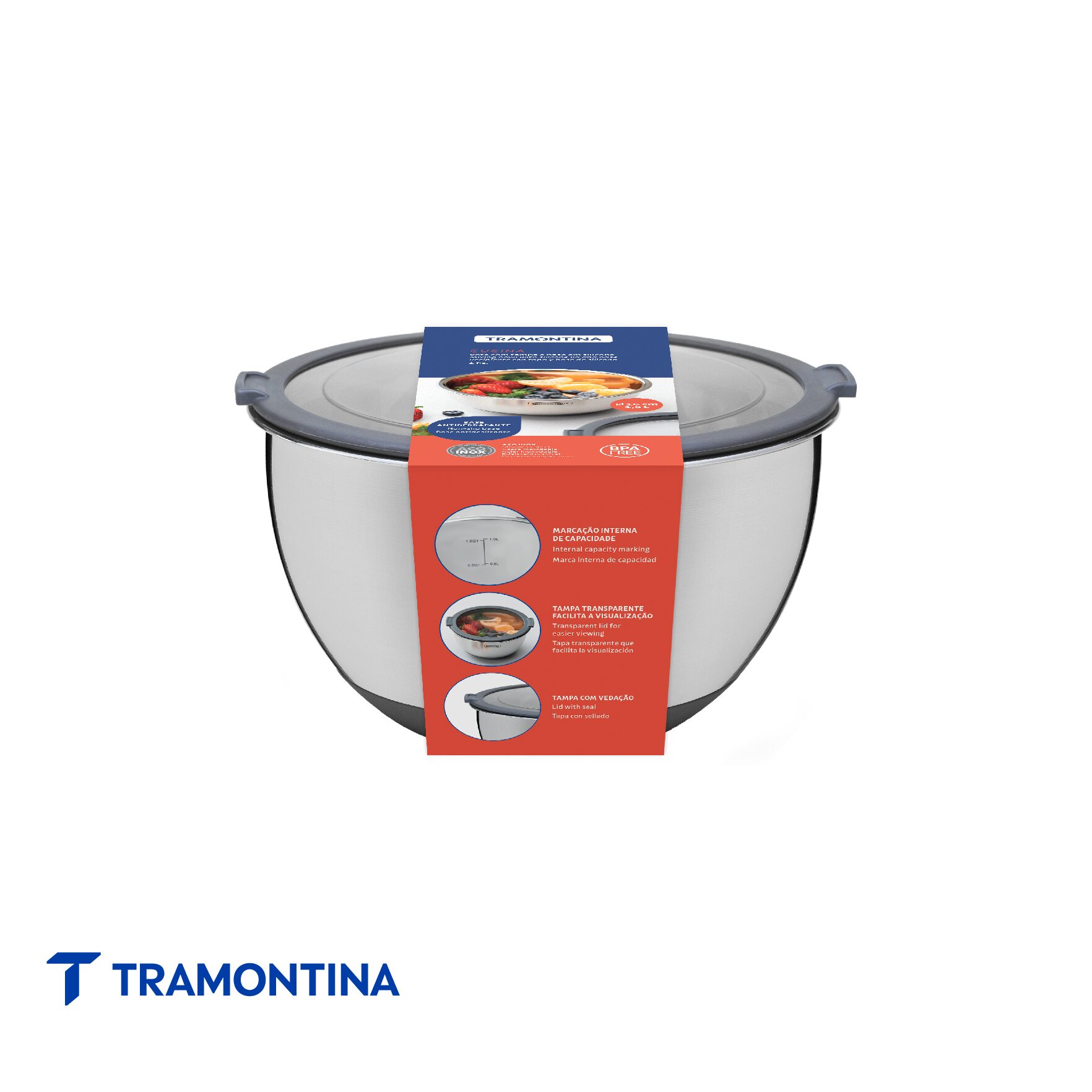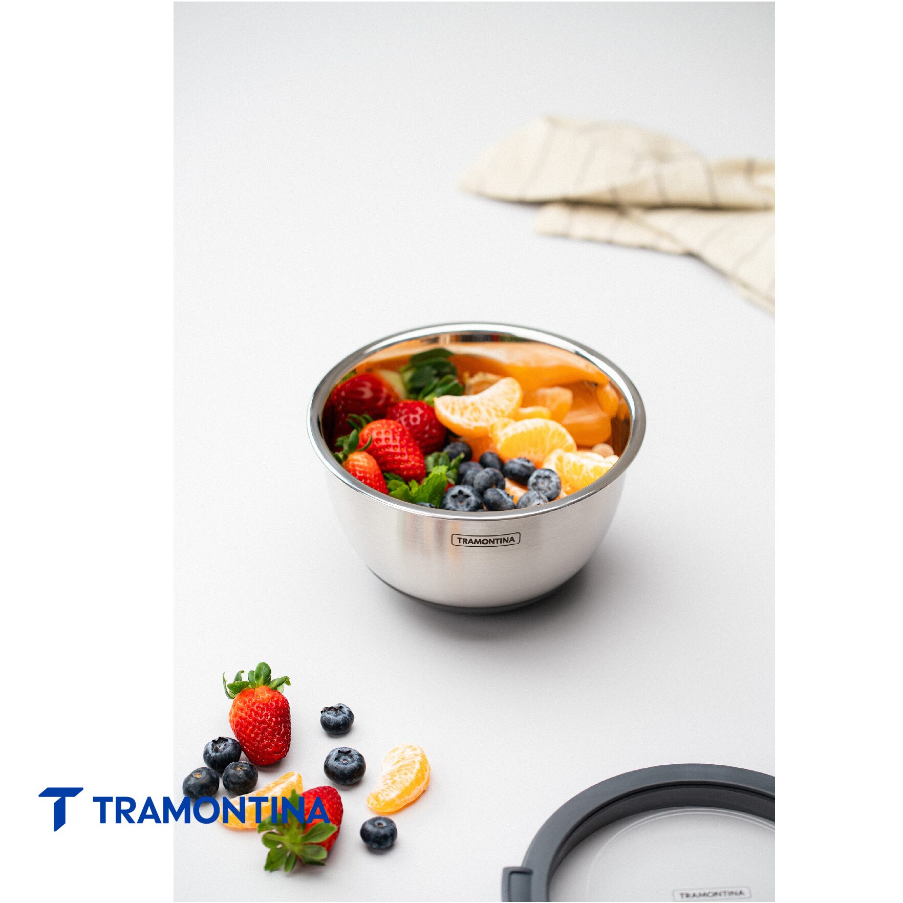 El recipiente redondo Tramontina Cucina en acero inoxidable de 1,5 litros es la elección perfecta para quienes buscan calidad y practicidad en la cocina. Fabricado en acero inoxidable de elevada calidad, este recipiente redondo es durable, higiénico y fácil de limpiar, lo que garantiza que sus alimentos estarán protegidos y conservados de la mejor manera. La tapa transparente con sellado hermético asegura un cierre perfecto, que preserva la frescura y calidad de los alimentos por más tiempo, además de permitir ver el contenido sin abrir. Con base de silicona antideslizante, brinda mayor seguridad durante la preparación y evita que el recipiente redondo se deslice en la mesada. Compacto u funcional, es ideal para preparar ingredientes o almacenar alimentos para que su día a día en la cocina sea aún más práctico.