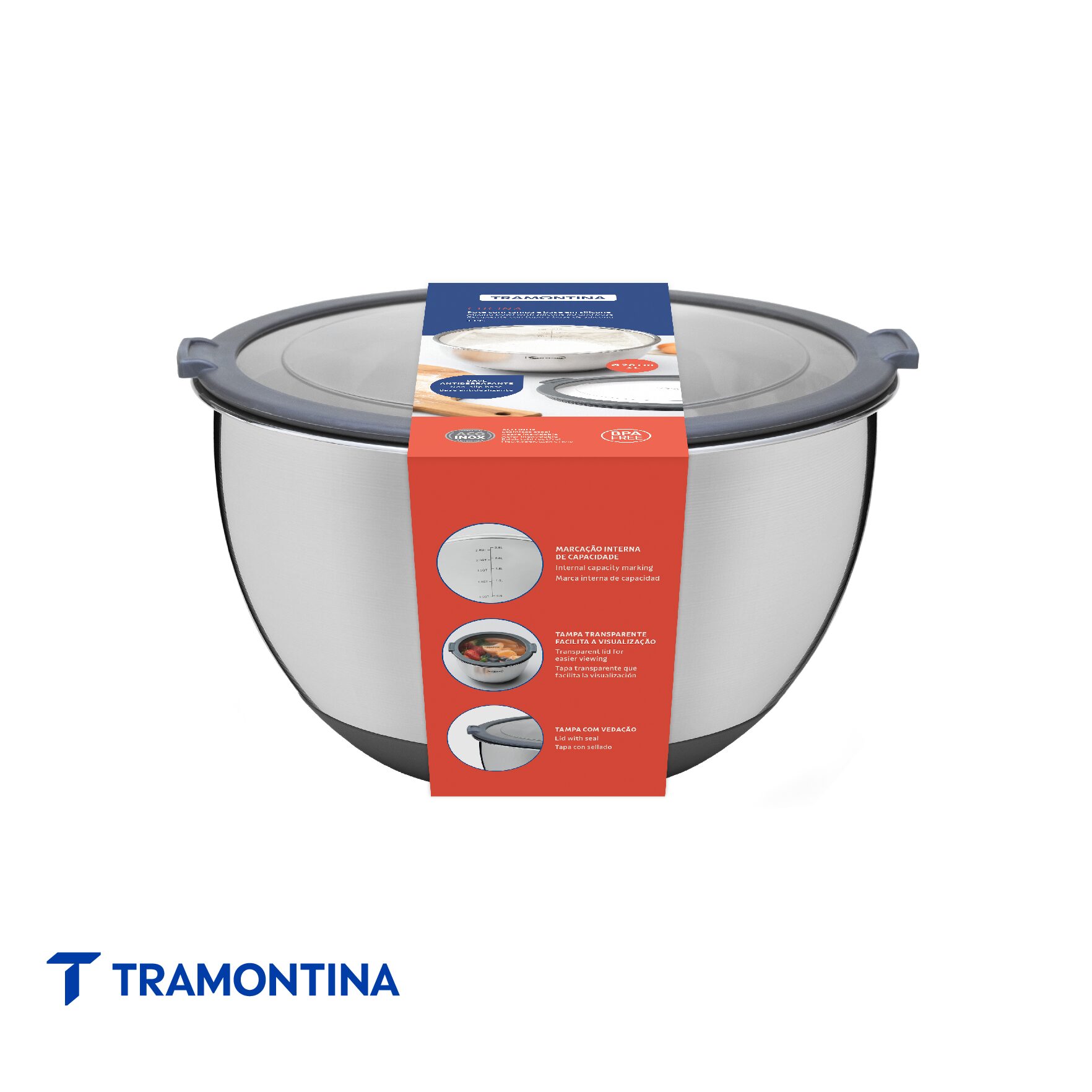 Descubra la practicidad del recipiente redondo Tramontina Cucina en acero inoxidable de 3 litros, perfecto para quienes aprecian calidad y versatilidad. Producido en acero inoxidable de alta calidad, este recipiente redondo es resistente y fácil de limpiar, lo que mantiene sus alimentos siempre frescos y protegidos. La tapa transparente con sellado hermético asegura un cierre eficiente, preserva la calidad de los alimentos y permite ver el contenido sin abrir. Además, su base de silicona antideslizante ofrece mayor estabilidad durante la preparación, lo que evita deslizamientos no deseados. Con un diseño apilable, este recipiente redondo ahorra espacio en la heladera y facilita la organización en la cocina, lo que lo convierte en ideal para diferentes etapas de su proceso gastronómico.