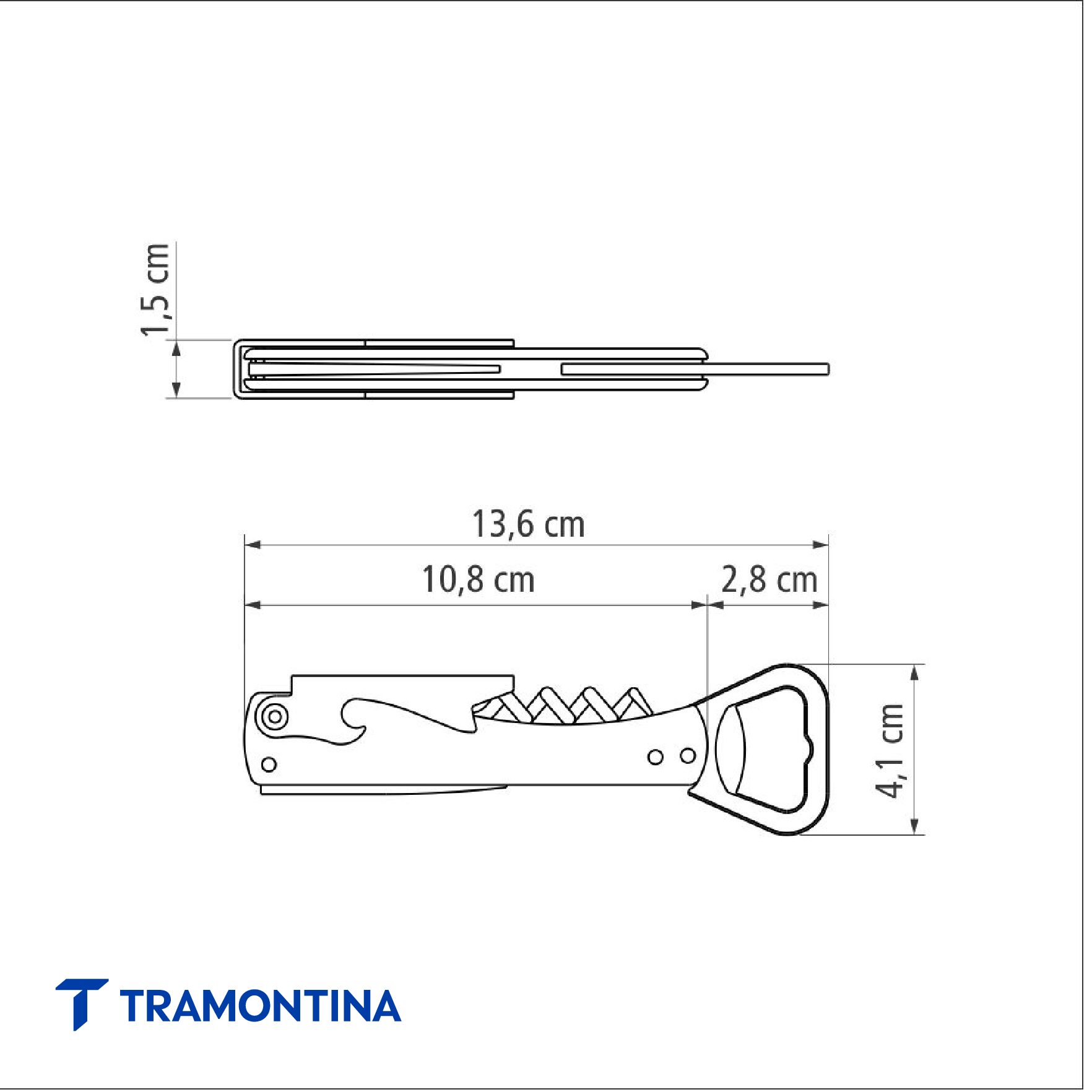 El Abridor con Sacacorchos y Navaja Tramontina Harmoniza con Láminas en Acero Inoxidable y Cuerpo en ABS Negro es la pieza perfecta para incorporar buen gusto y belleza a la hora de servir un buen vino. Con láminas en acero inoxidable y espiral de acero, posee cuerpo en ABS con un sofisticado color negro. ¡Una pieza esencial para hacer los encuentros aún más especiales!