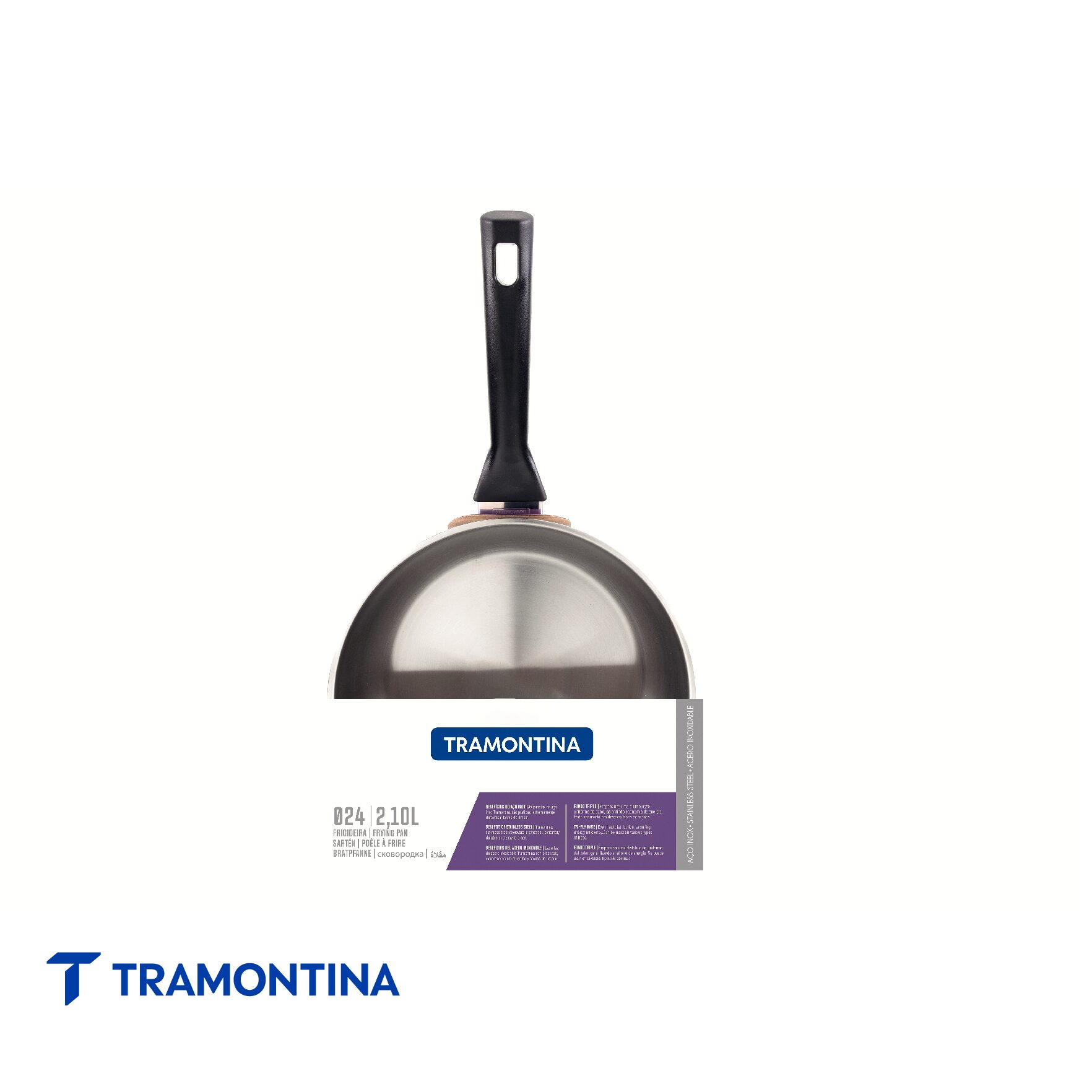 La rutina exige mucho, pero para un buen fanático de la gastronomía la cocina es un espacio para relajarse y preparar recetas que siempre colocan una sonrisa en el rostro. Con el sartén Tramontina de acero inoxidable fondo triple con mango baquelita 24 cm de diámetro 2,1 L de la línea Brava Baquelite tendrá más practicidad y seguridad a la hora de hacer sus platos favoritos. El sartén cuenta con un mango de baquelita, que es un aislante térmico con desempeño superior, proporcionando facilidad en su manipulación. Además de la funcionalidad, su diseño diferenciado y moderno, con acabado de alto brillo, le da un aspecto diferenciado a su cocina. Para ayudar en la cocción el sartén cuenta con fondo triple (acero inoxidable + aluminio + acero inoxidable), que distribuye el calor por toda su extensión, agilizando el proceso de cocción de los alimentos. Cocinar puede ser mucho más placentero con el sartén Brava Baquelite.