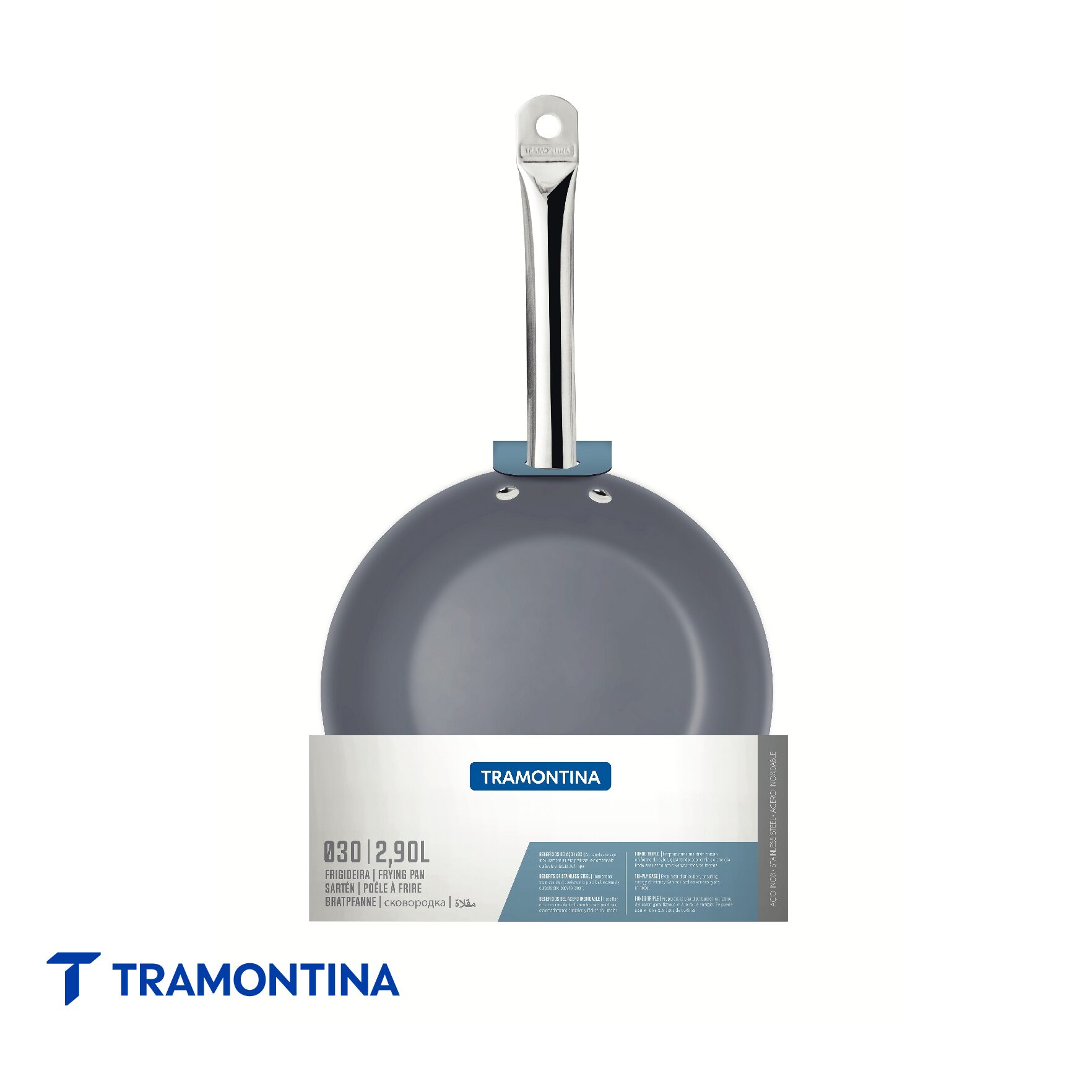 El sartén raso Professional de acero inoxidable con fondo triple y revestimiento interno cerámico grafito de 30 cm de diámetro y 2,9 l Tramontina, ofrece una nueva experiencia de cocción. Perfecto para chefs profesionales o amantes de la gastronomía, es una pieza moderna que impresiona por sus características. Altamente durable, posee revestimiento cerámico que permite una cocción con poca grasa, haciendo que las recetas sean más sanas y eficientes en la preparación. La tecnología de fondo triple (acero inoxidable + aluminio + acero inoxidable) también lo convierte en una pieza excepcional. Distribuye el calor uniformemente, cocinando los alimentos de forma rápida y ahorrando energía. ¡Sus recetas estarán calientes durante más tiempo! Tiene un tamaño de 30 cm de diámetro y capacidad para 2,9 litros, cumpliendo con los requisitos de las recetas más complejas. Es un producto único y lleno de estilo, que transforma su forma de cocinar.