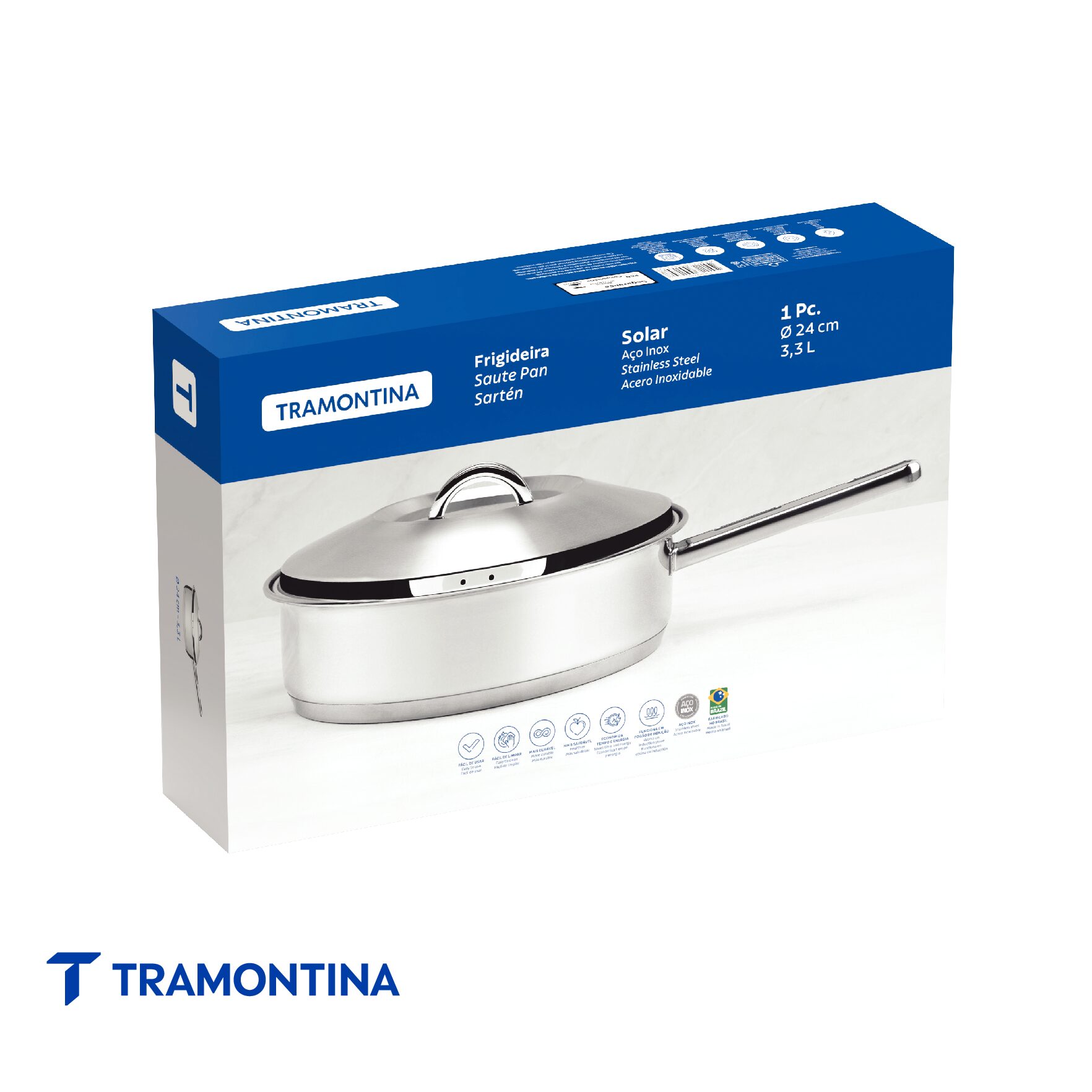 ¿Está listo para realizar recetas increíbles? con el sartén Tramontina de acero inoxidable con fondo triple y tapa 24 cm de diámetro 3,3 L no tendrá límites en la cocina. La línea Solar es símbolo de practicidad y durabilidad, perfecta para aventurarse y preparar numerosos platos. El sartén de Tramontina es hecha de acero inoxidable y posee fondo triple (acero inoxidable + aluminio + acero inoxidable), lo que garantiza que sus alimentos sean cocinados uniformemente y sin alteración de sabor, porque el acero inoxidable no suelta partículas que puedan afectar su producto. Llegó la hora de abrirse al mundo de la gastronomía.