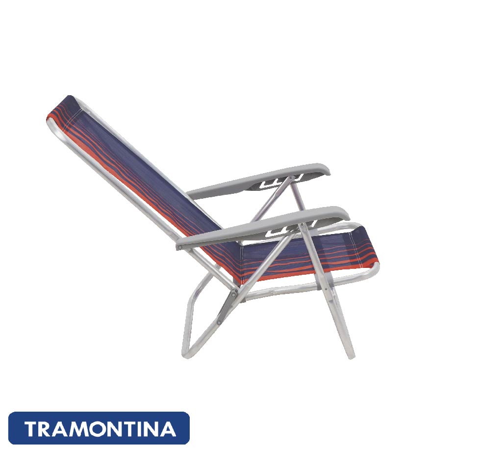 Para disfrutar bellos momentos al sol, puede contar con la silla de playa reclinable Tramontina Bali baja en aluminio con asiento azul oscuro y naranja. Perfecta para los momentos de esparcimiento en la playa, piscina o en campamentos, tiene capacidad para 100 kilos y posee un regulador de respaldo con cuatro posiciones diferentes, lo que les garantiza un mayor confort y bienestar a sus horas de descanso. La estructura de la silla es en aluminio, su acabado es totalmente de color gris y la tela de color azul oscuro. ¡Esto garantiza uniformidad visual, modernidad y exclusividad de diseño, que se inspira en la isla de Bali!