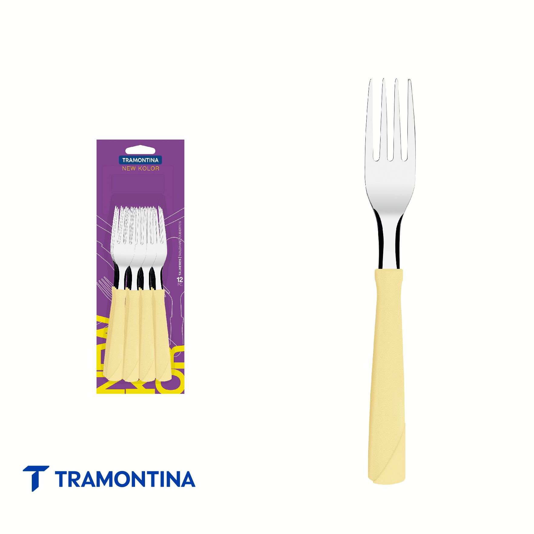 El Juego de Tenedores de Mesa Tramontina New Kolor con Láminas de Acero Inoxidable y Mangos de Polipropileno Crema 12 Piezas trae toda la practicidad y calidad que precisas para hacer que tus comidas queden todavía mejores. Sus láminas de acero inoxidable son resistentes y presentan durabilidad, además de los mangos de polipropileno, que proporcionan un manejo agradable y práctico, porque su formato anatómico permite un encaje perfecto en la mano. Lo mejor de todo es que puedes llevarlos al lavavajillas.