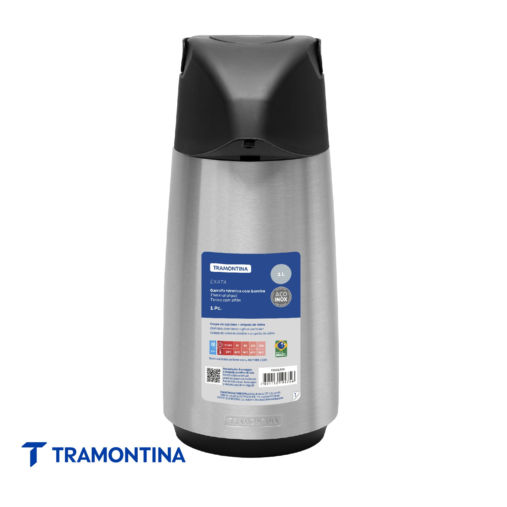 A la hora de tomar su mate, calentar un café o un té, nada mejor que un termo con sifón que conserve bien la temperatura del líquido por el mayor tiempo posible, ¿verdad? Así es el termo con sifón de acero inoxidable con ampolla de vidrio 1 L de la línea Exata Tramontina. Puede llevarlo a cualquier lugar, pues con sus líneas atemporales y diseño simple combina con cualquier ambiente. Posee un asa embutida para agarre cómodo que da una sensación de estabilidad. Además, el termo posee un sistema antigoteo, evitando que las gotas indeseadas caigan después de servir. El termo es robusto, simple y moderno, ocupa menos espacio en su casa y durante el transporte. Además, es liviano y fácil de manipular. ¡Un termo con la calidad Tramontina que usted conoce!