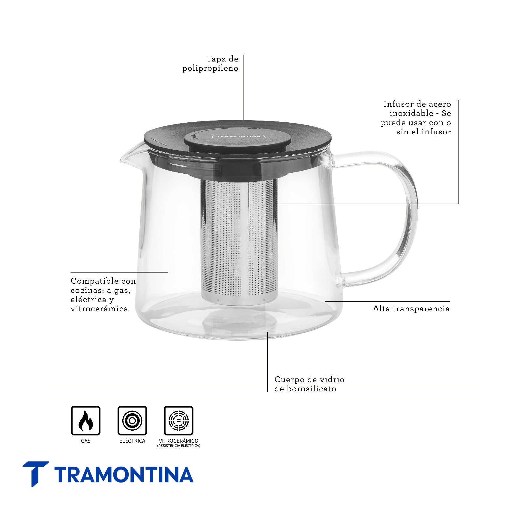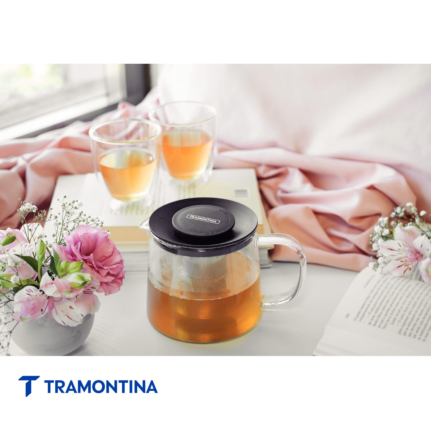 La hora del té es aún más encantadora y práctica con la jarra para té de vidrio y acero inoxidable con el infusor de 900 ml Tramontina. La pieza está hecha de vidrio borosilicato y se puede usar con o sin el infusor, así como también se pueden preparar bebidas frías o calientes sin preocuparse con la resistencia de la pieza. ¡La hora del té es mucho más agradable y perfecta con la calidad de Tramontina!