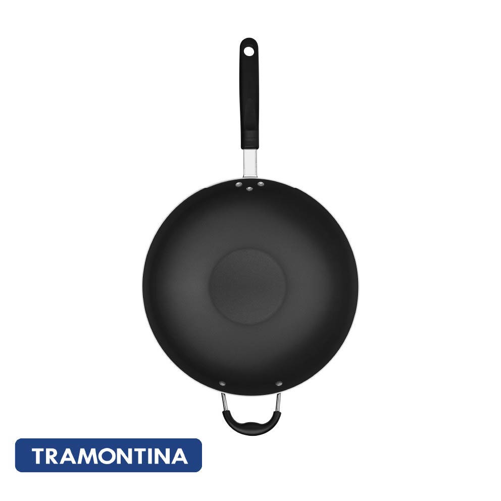 ¡Para saltear, cocinar al vapor o simplemente calentar sus alimentos de manera eficaz, necesitará en su cocina el wok Tramontina Loreto en aluminio con revestimiento interno de antiadherente Starflon Max con mango de baquelita grafito de 36 centímetros de diámetro y 6 litros! Producido en aluminio, permite la cocción rápida y uniforme de los alimentos gracias a su espesor. Su revestimiento de antiadherente Starflon Max posee alto poder de antiadherencia, que no requiere aceite en la preparación de los alimentos y evita que se peguen en la superficie. Además, garantiza más resistencia y durabilidad. Su mango y asa están producidos en acero inoxidable con protección de baquelita antitérmica, que ofrece seguridad durante el manejo. Es una pieza esencial en su cocina por ser resistente, durable y práctica, además de apta para lavavajillas. ¡Un producto perfecto para preparar diversos tipos de recetas con la calidad Tramontina que usted conoce!